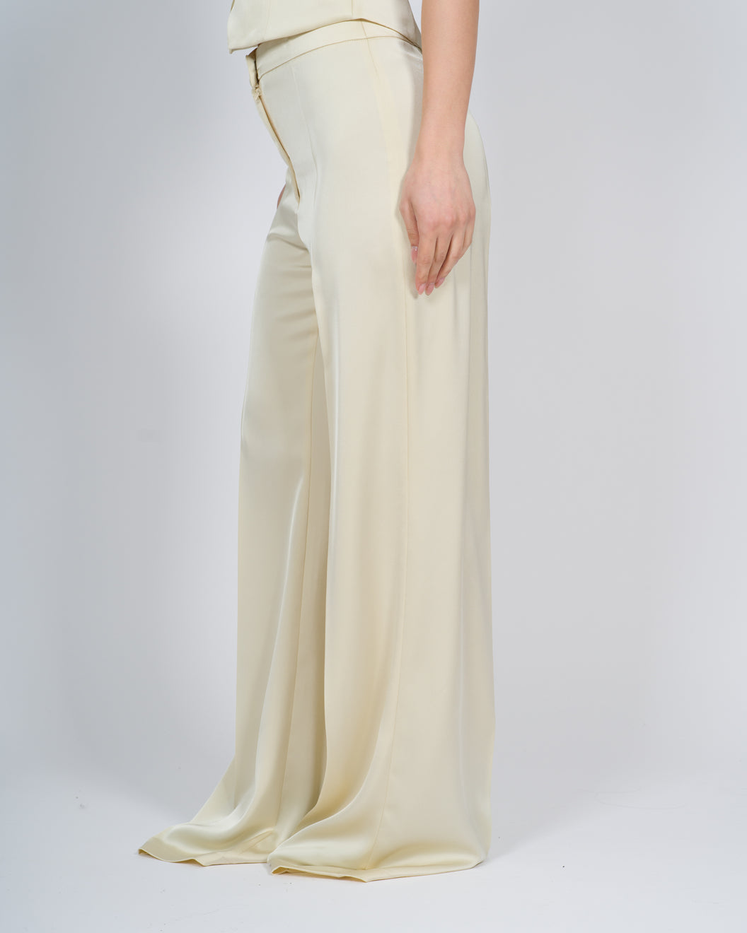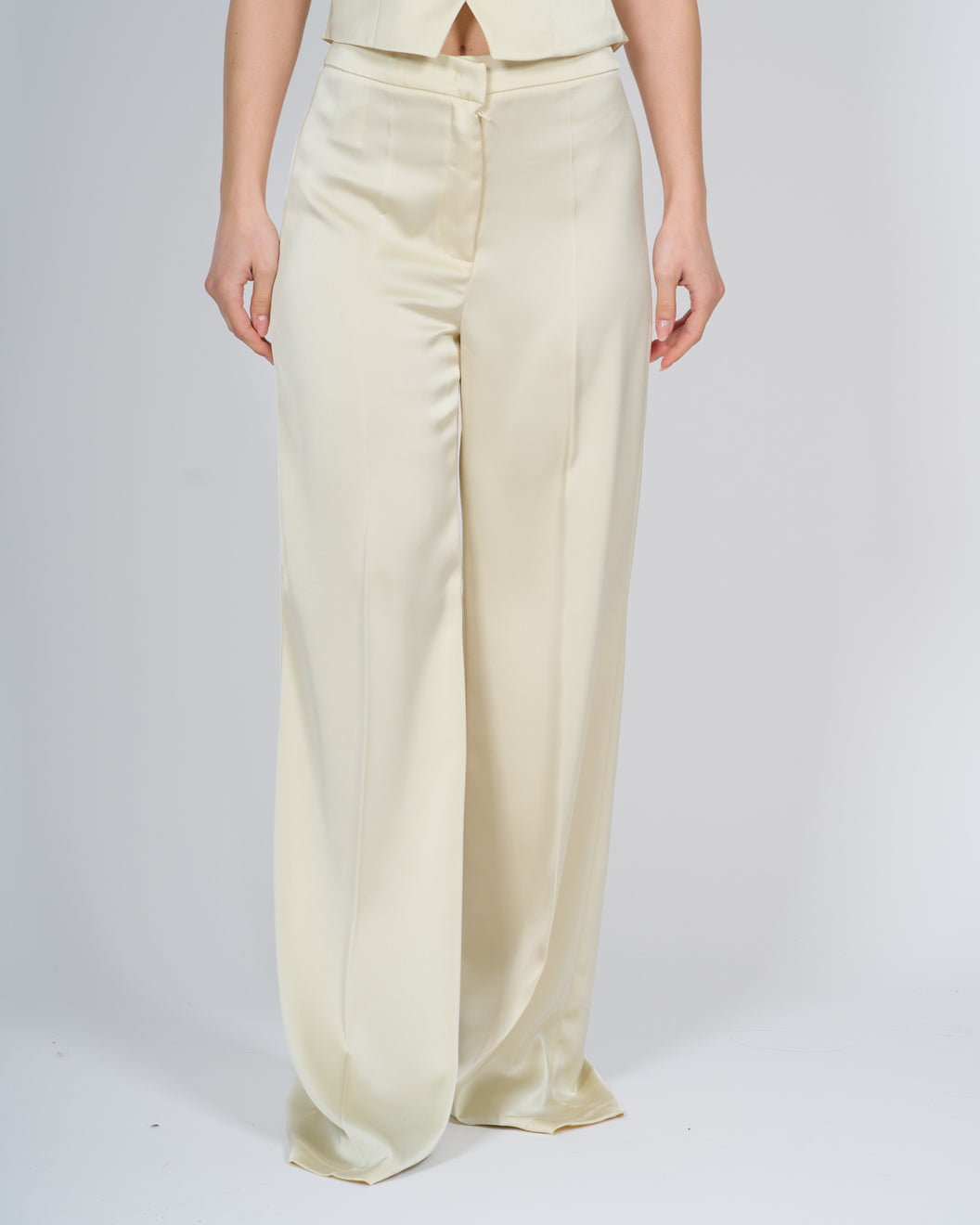 -Kimono Pants-Modello palazzo-Tessuto raso-Morbido al tatto-Vita alta e stretta-Chiusura con zip avanti e bottoncino-Prodotto made in Made in Italy-Composizione: 100% PES-La modella indossa la taglia S, altezza 1.70 cm