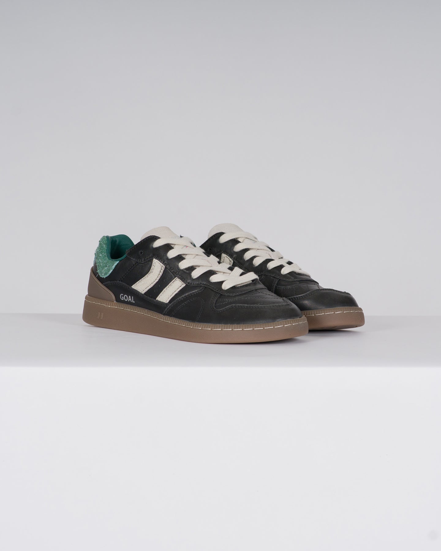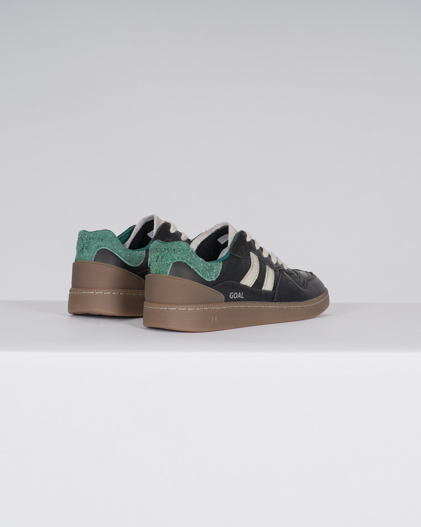 Le scarpe Coolway Goal sono il modello più iconico del brand. Realizzate in pelle con dettagli di colore a contrasto, sono dotate di lacci piatti intercambiabili in cotone bicolore e di una suola flessibile in gomma che fornisce durata e aderenza.
