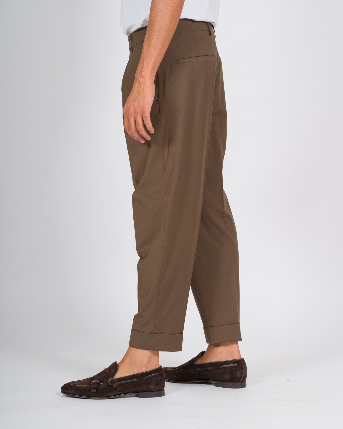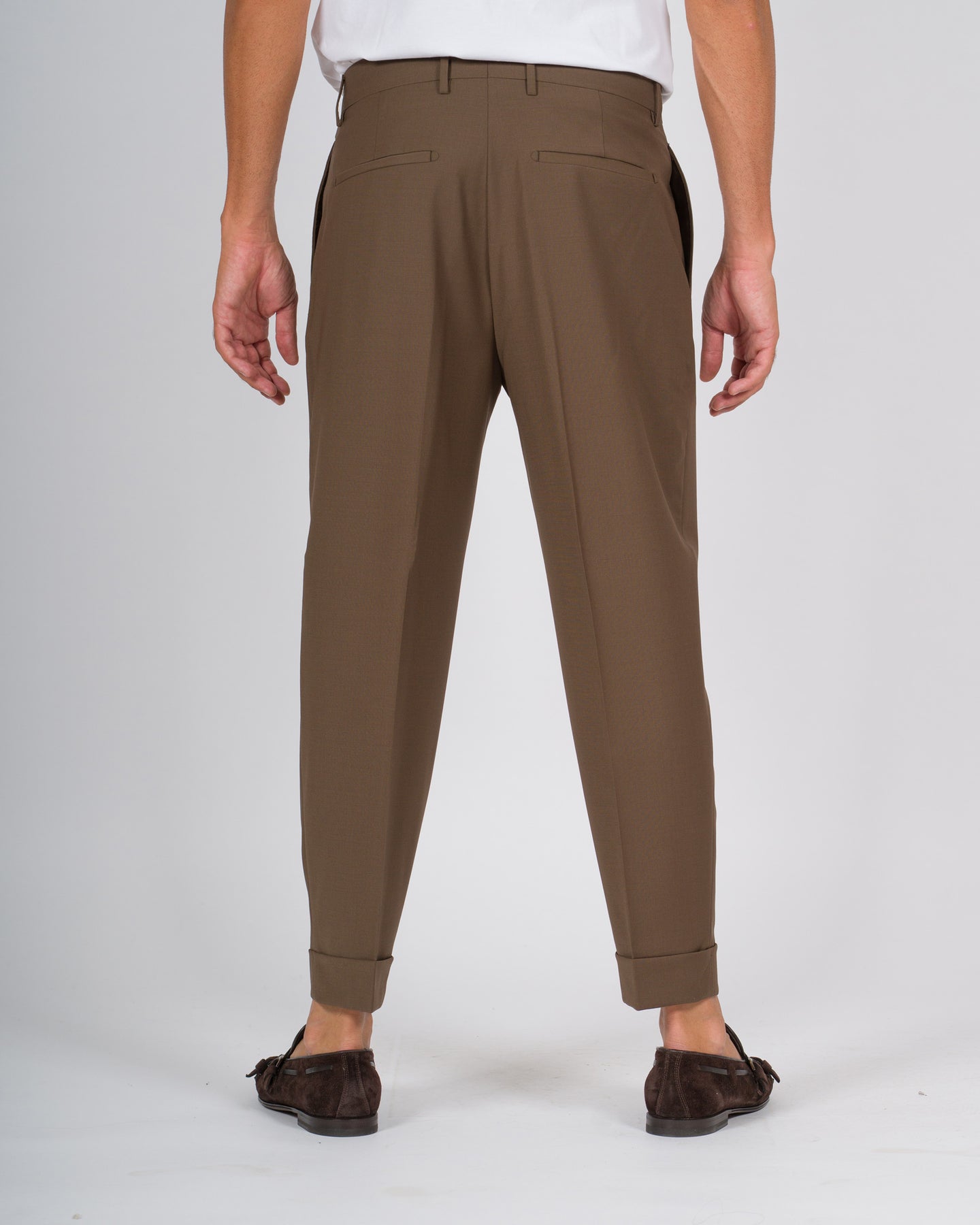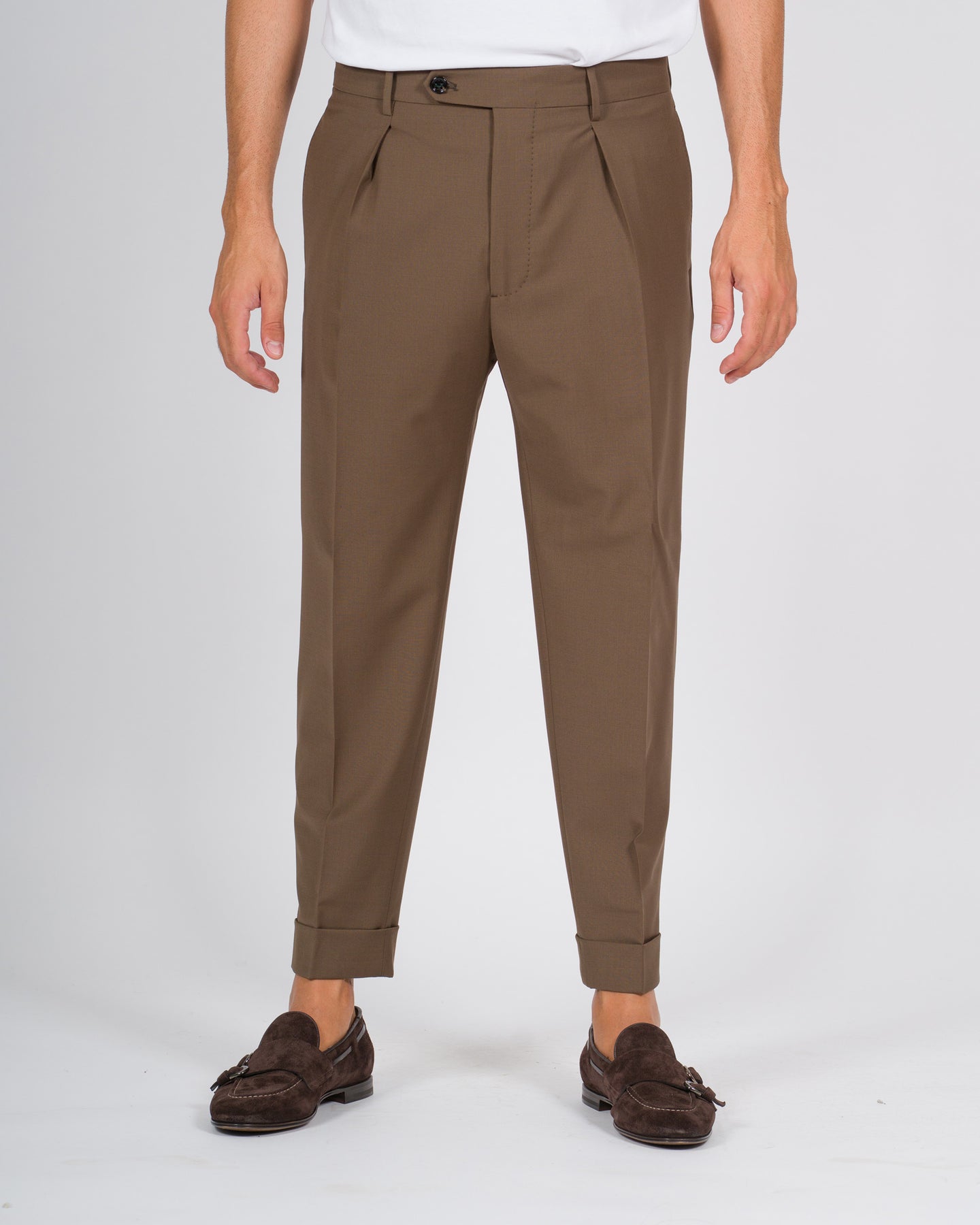 I pantaloni Berwich modello Chiaia, rappresentano un capo sartoriale di ispirazione napoletana, pensato per l'uomo che ricerca uno stile elegante e contemporaneo. Realizzati in pura lana four season.Il design con pence frontali singole, cintura a passanti e chiusura e chiusura con bottoni e zip sottolinea l'attenzione ai dettagli tipica del brand Berwich. La vestibilità regolare, leggermente affusolata sul fondo, garantisce comfort e proporzioni armoniose.Dettagli tecnici:•Modello: Chiaia•Tessuto: 100% lana four season•Colore: marroneIl modello indossa la taglia 48 ed è alto 1.90.