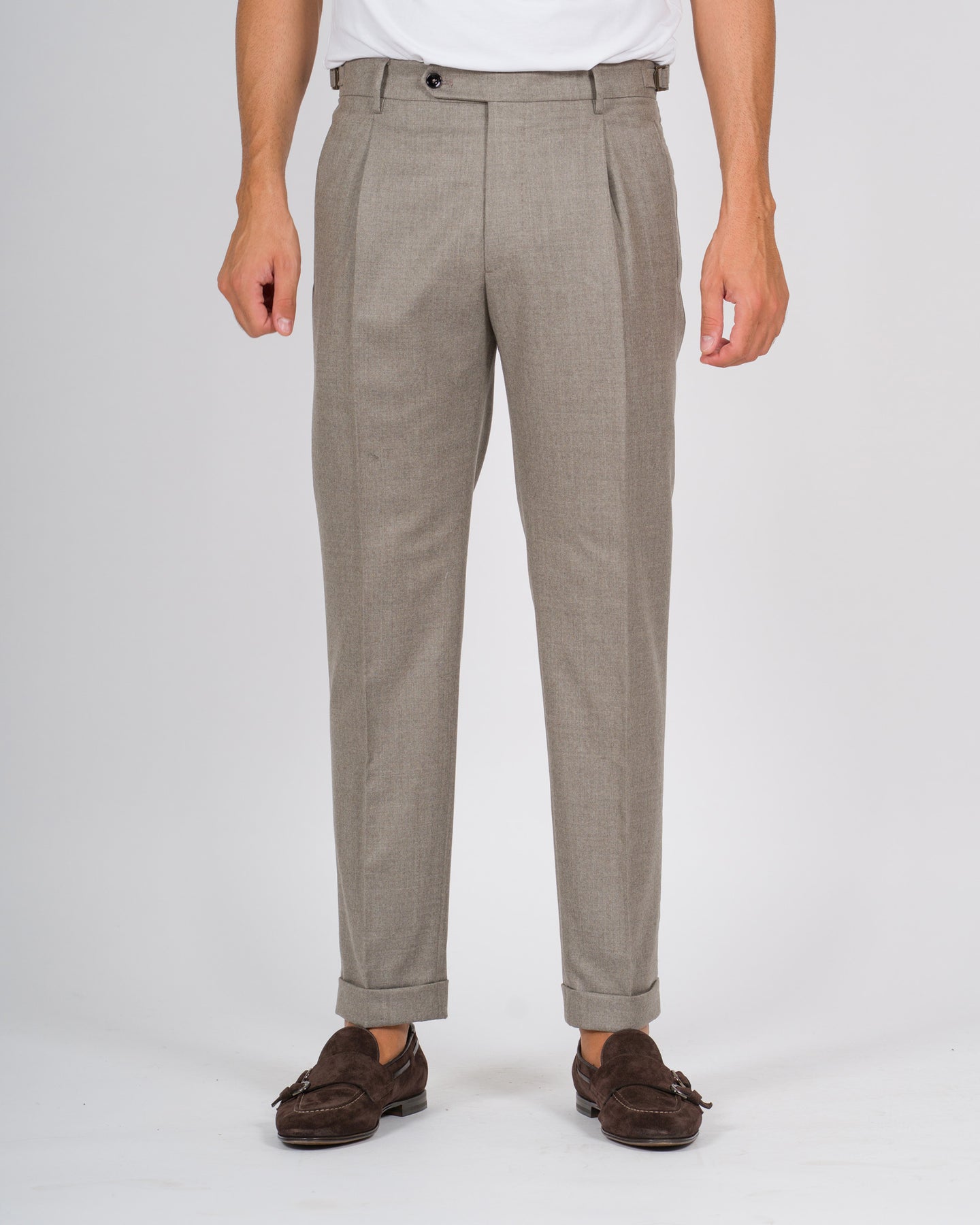 Il pantalone retro di Berwichè un modello che unisce sartorialità classica italiana e funzionalità contemporanea. Realizzato in pregiata lana Vitale Barberis Canonico, questo pantalone è pensato per chi ricerca uno stile raffinato, comodo ed adatto ad ogni stagione.Dettagli tecnici:•Vestibilità: regolare•Pence frontale •Gamba dritta•Cinturini laterali•Chiusura con zip e bottoni•Tasche posteriori•Tessuto: 100% lana•Fondo con risvolto 4 cm•Colore: desertIl modello indossa la taglia 48 ed è alto 1.90.