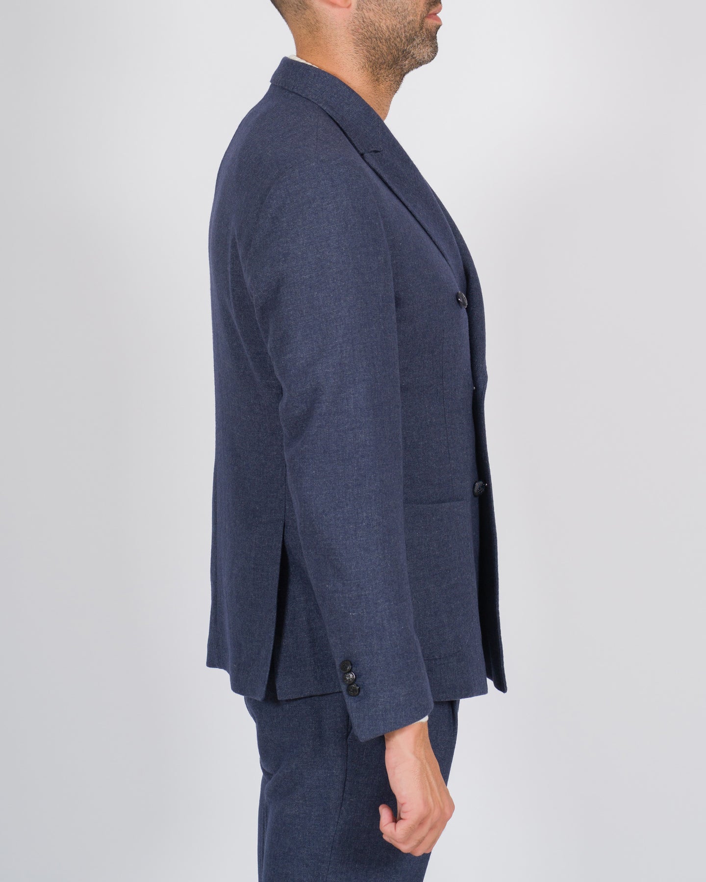 Raffinata e senza tempo, la giacca doppiopetto blu di Bottega Marchigiana è realizzata in pura lana e rifinita con l'eccellenza del made in Italy. Il taglio sartoriale valorizza la silhouette con linee pulite ed essenziali, mentre la costruzione doppiopetto dona un carattere deciso e contemporaneo.Il modello presenta rever classico, abbottonatura a sei bottoni, tasche a pattina e un pratico spacco posteriore, unendo eleganza e funzionalità. Un capo versatile, perfetto sia per occasioni formali che per look più disinvolti se abbinato a denim o maglieria.Pensata per chi ama i completi coordinati, la giacca può essere indossata con il pantalone dello stesso tessuto, per un outfit dall'impatto sofisticato e armonioso.