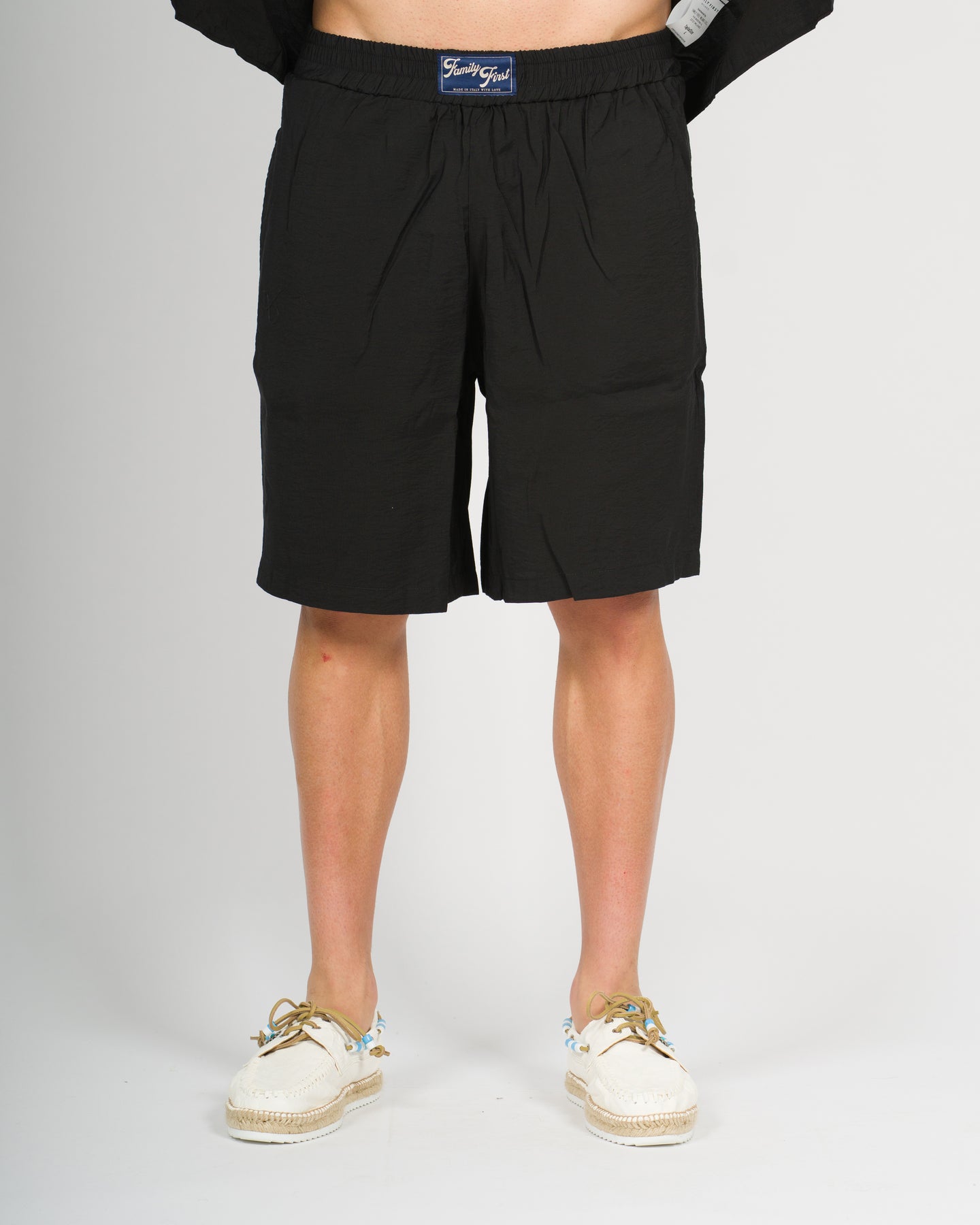 Realizzati in Italia, questi short offrono comfort e stile eccezionali.Dotati di elastico in vita, ogni dettaglio riflette il nostro impegno per la qualità.Le meticolose cuciture a doppio ago aggiungono un tocco di raffinatezza a questo capo essenziale e confortevole.Il modello è alta 184 cm e indossa una taglia L.
