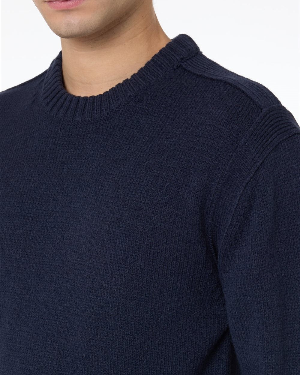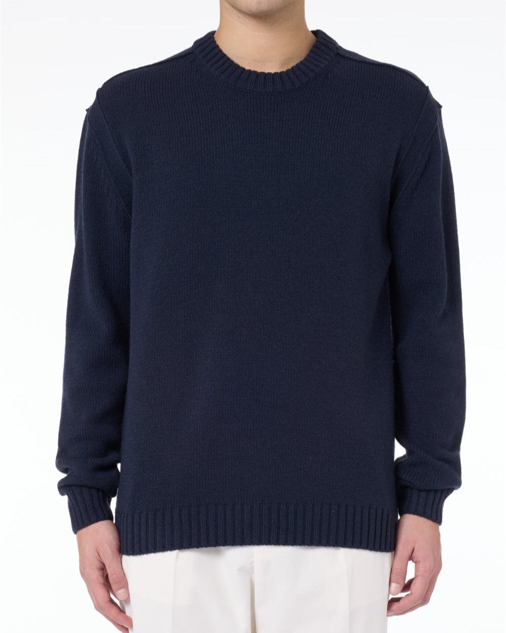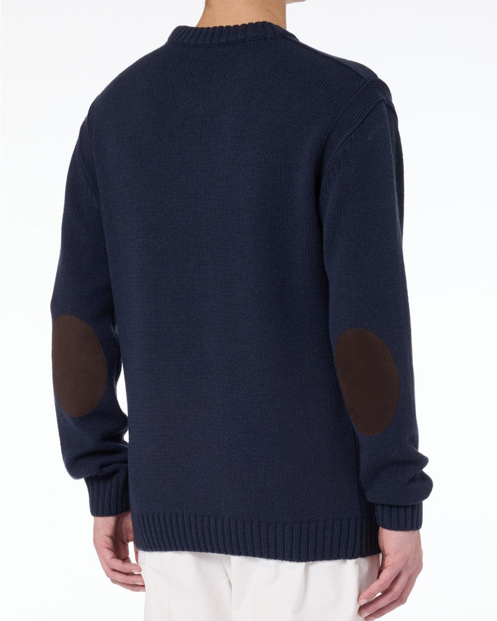 Maglia girocollo manica lunga in tessuto lana mvergine con toppe marrone.
