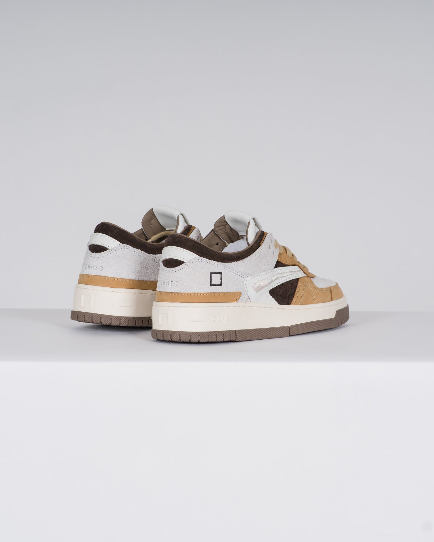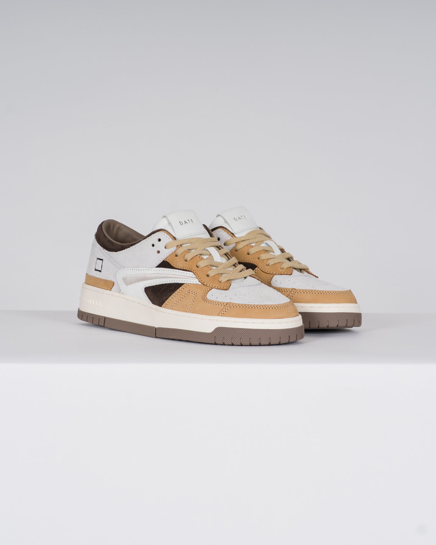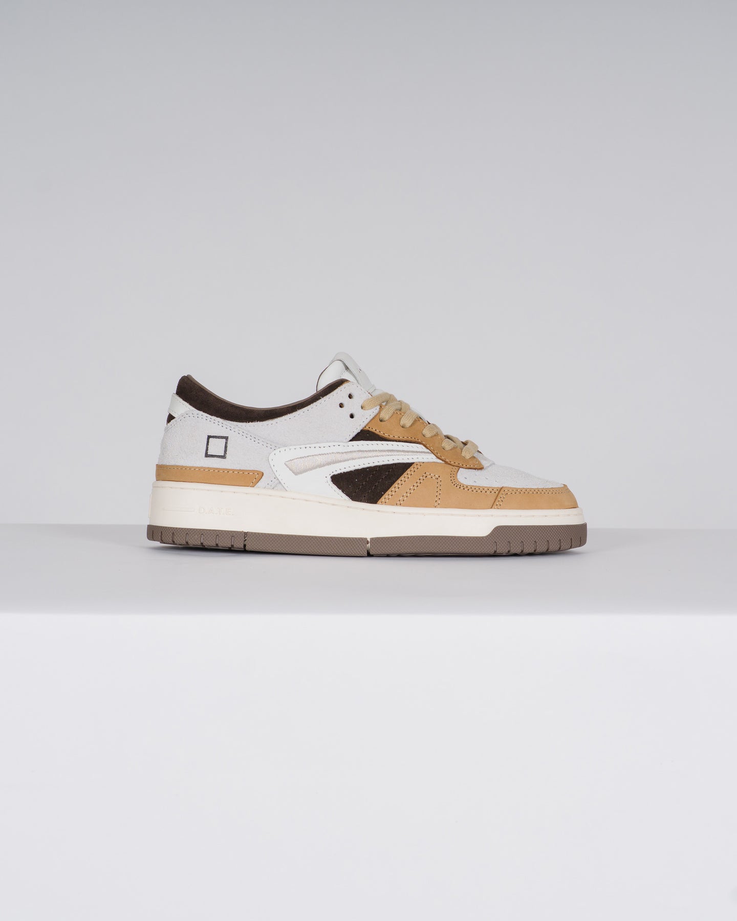 Sneakers bassa in suede hairy colore bianco e nabuk colore cuoio.-La punta è traforata per una maggiore traspirazione.-Sulla linguetta è impressa la scritta D.A.T.E.-I lacci sono in cotone e il logo quadrato è impresso lateralmente.-Collare in suede colore marrone.-Dettaglio laterale ricamato colore grigio chiaro.-Nome del modello impresso posteriormente.-Fodera in pelle e spugna di cotone.-Il soletto interno è rialzato di 2.5 cm per un migliore comfort.-La suola in gomma, alta 2.5 - 4 cm, è cucita.-Tutti i materiali selezionati sono Made in Italy.-Vestibilità: REGULAR