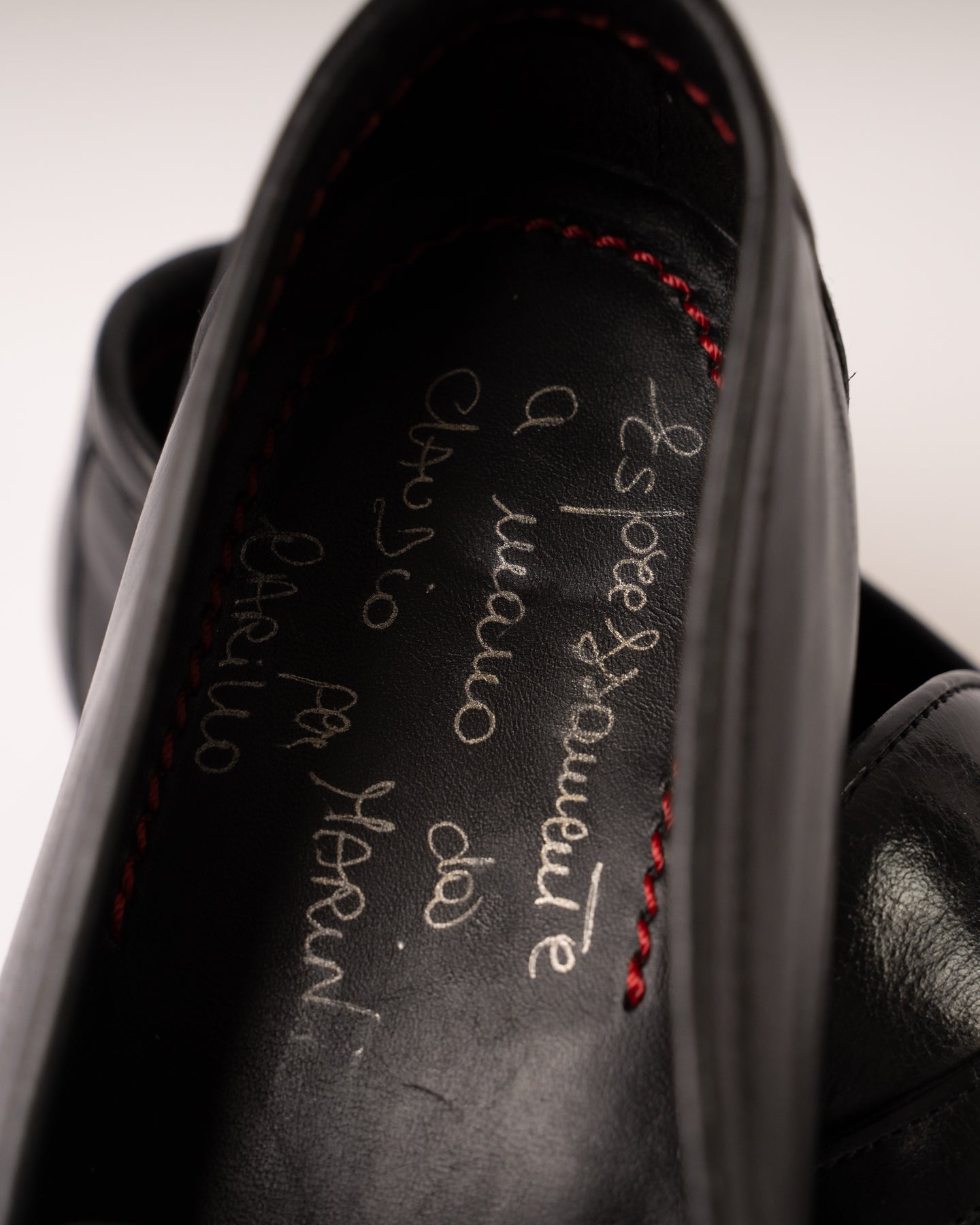 Mocassini in pelle spazzolata colore nero con fibbia e suola in cuoio.