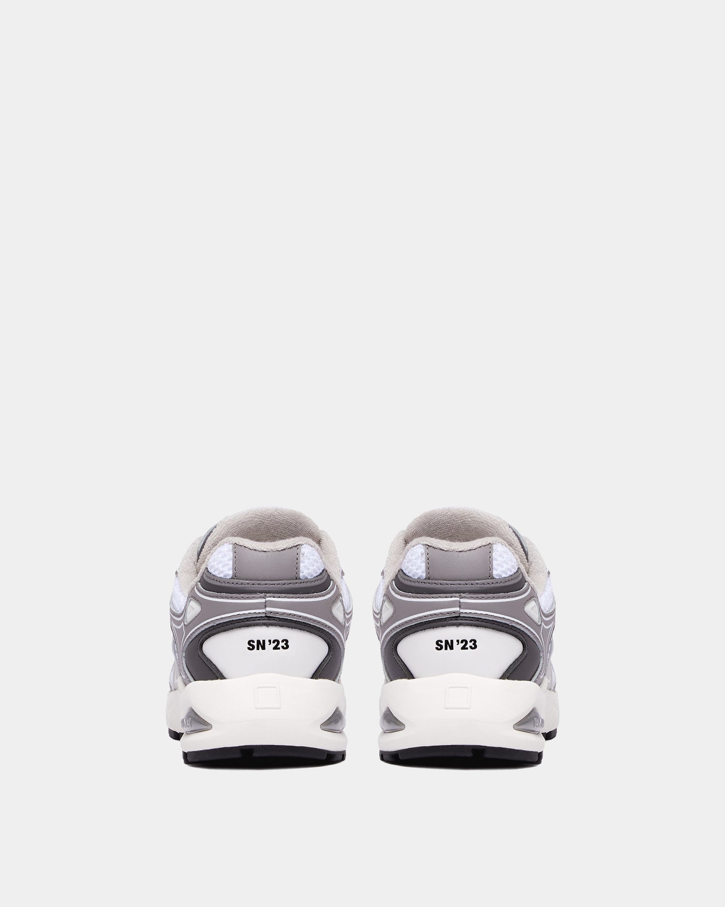 Running sneaker in mesh colore bianco con inserti in pelle colore grigio e beige.-Sulla linguetta si trova la label in TPU con la scritta D.A.T.E.-I lacci sono in tessuto.-Dettagli argento e dettagli grafici colore bianco.-Il modello SN'23 è impresso sul retro.-Il logo quadrato è in rilievo posteriormente.-Fodera in tessuto.-La soletta interna è rialzata di 2.5 cm per un miglior comfort.-La suola in gomma è alta 2 - 4 cm.-Vestibilità: SMALL