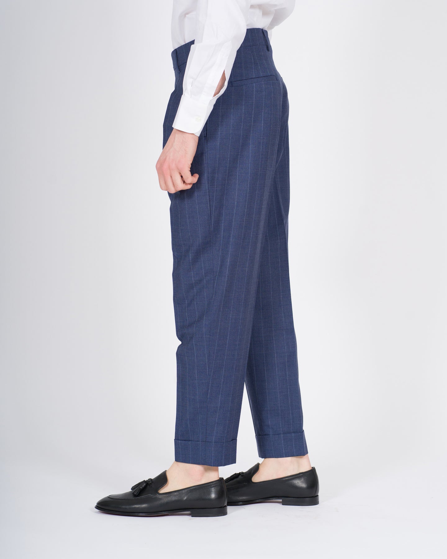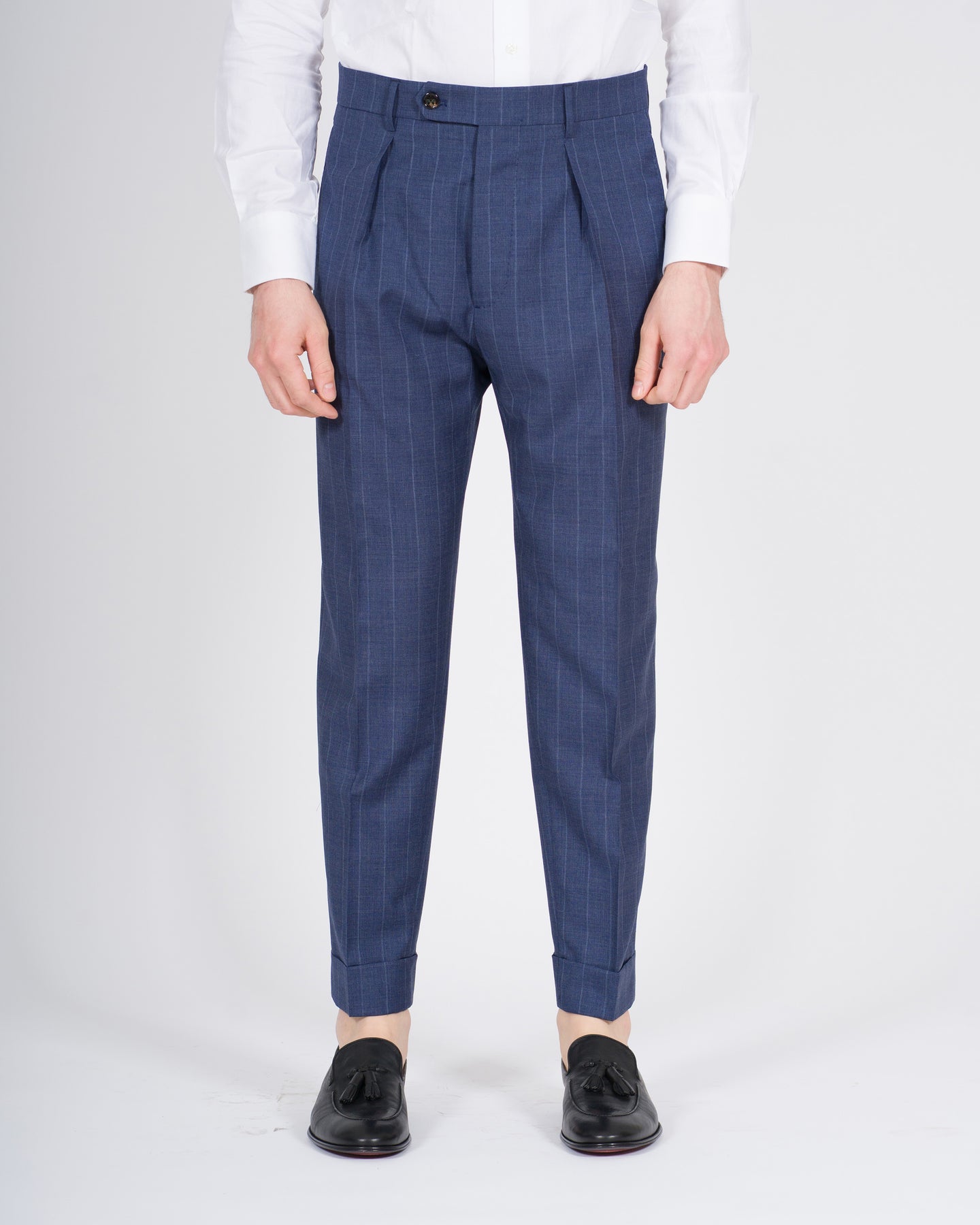 Il pantalone modello Chiaia Berwich fa parte della collezione Primavera Estate ed è pensato per l'uomo e la donna di Carillo Nola, interpretando uno stile sartoriale raffinato e contemporaneo. Un capo che esprime equilibrio tra ricerca dei materiali, cura costruttiva ed estetica senza tempo.Realizzato in tessuto 100% lana, nella raffinata versione gessata su fondo indaco, offre comfort, traspirabilità e una mano morbida, ideali per un utilizzo elegante e versatile. La qualità della lana garantisce una vestibilità naturale e un'elevata resa estetica, mantenendo il capo leggero e piacevole da indossare.Il modello è caratterizzato da pence frontali, che valorizzano la silhouette, e da risvolto sul fondo, dettaglio iconico della tradizione sartoriale italiana e cifra distintiva del modello Chiaia.Un capo essenziale e distintivo, capace di accompagnare look formali e casual sofisticati, espressione autentica dell'identità Berwich e dell'eccellenza del made in Italy.
