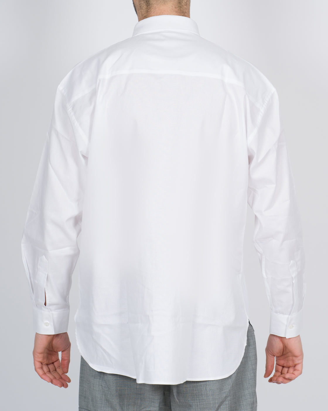 Camicia manica lunga con chiusura bottoni dalla vestibilità over con logo cuore sul petto.Il modello è alto 1,90 e indossa la taglia L.