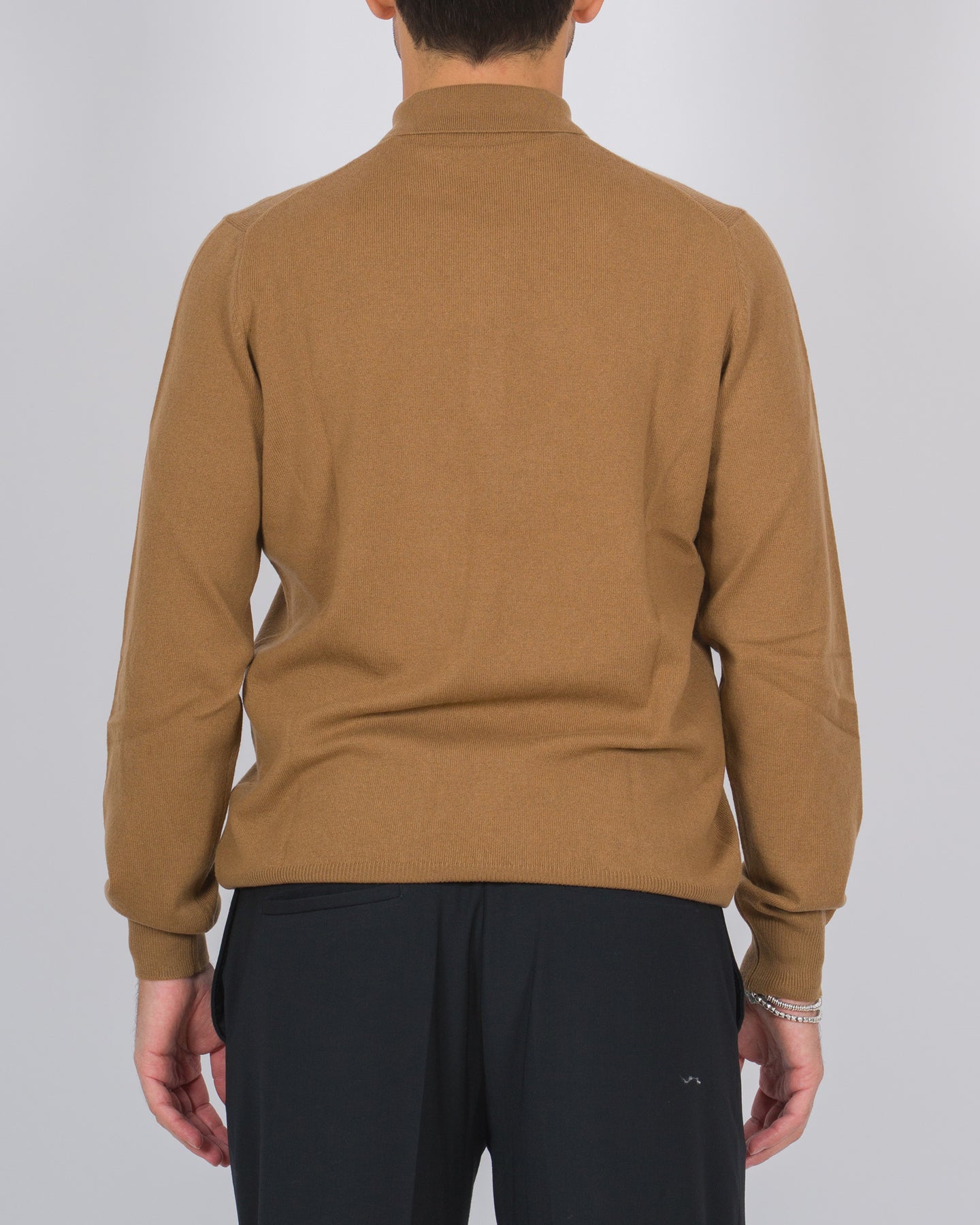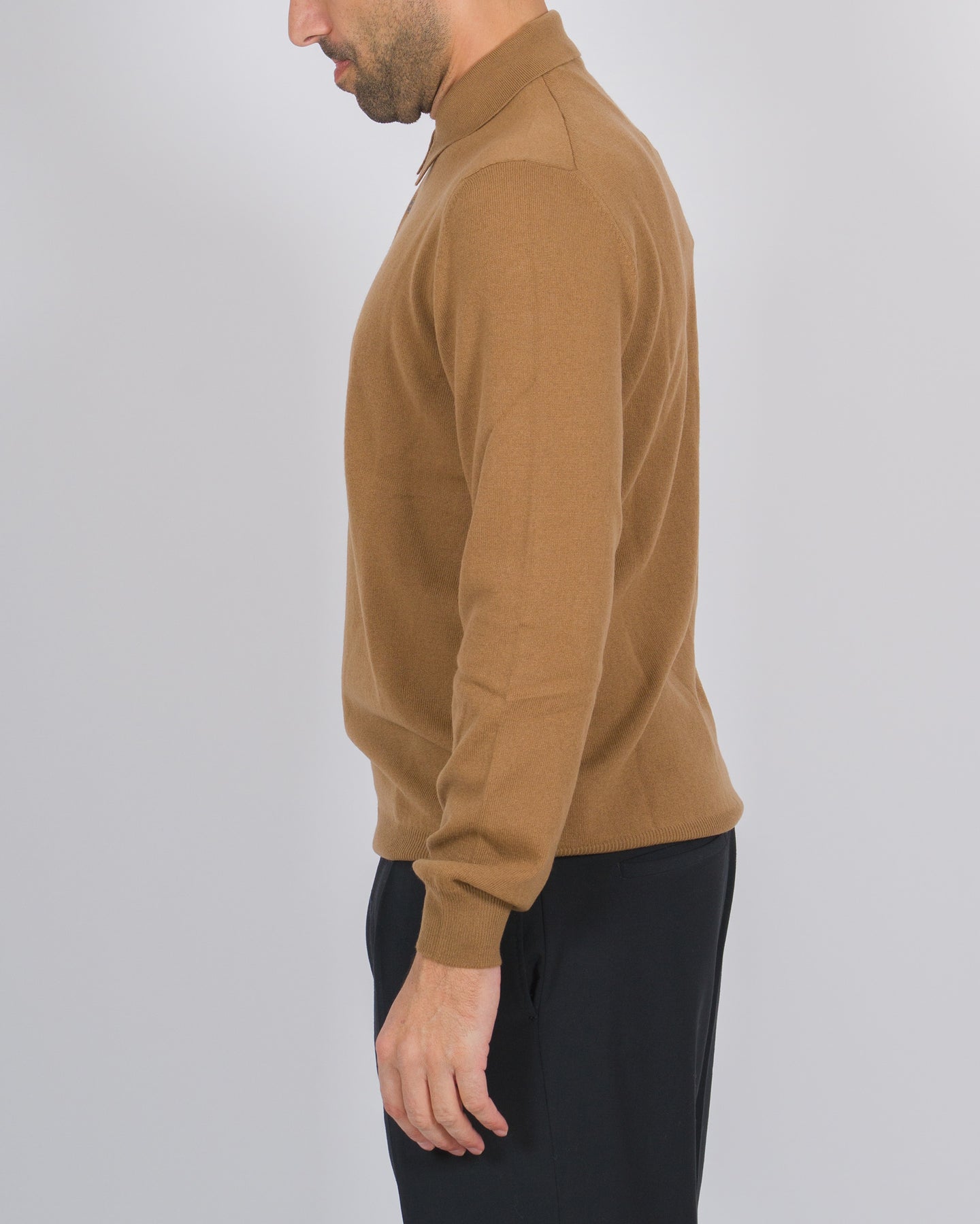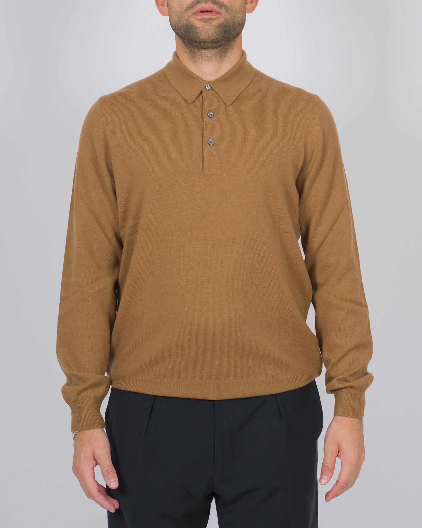 Polo a manica lunga realizzata in un pregiato mix di lana, viscosa e cashmere, un connubio che garantisce morbidezza, comfort termico e una mano particolarmente raffinata. Il filato leggero e caldo assicura una sensazione piacevole sulla pelle e una vestibilità confortevole durante tutta la giornata.Il modello presenta una chiusura a tre bottoni sul davanti, che richiama lo stile classico della polo ma con un tocco più ricercato grazie alla finezza dei materiali. Il colletto strutturato mantiene un aspetto ordinato, mentre i polsini e l'orlo sono rifiniti a costine per una migliore tenuta della forma.Elegante e versatile, questa polo è ideale sia per look casual ricercati sia per contesti più formali, perfetta come alternativa sofisticata al classico maglione o alla camicia.