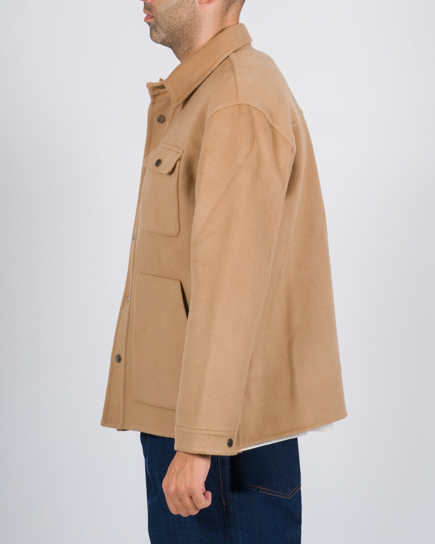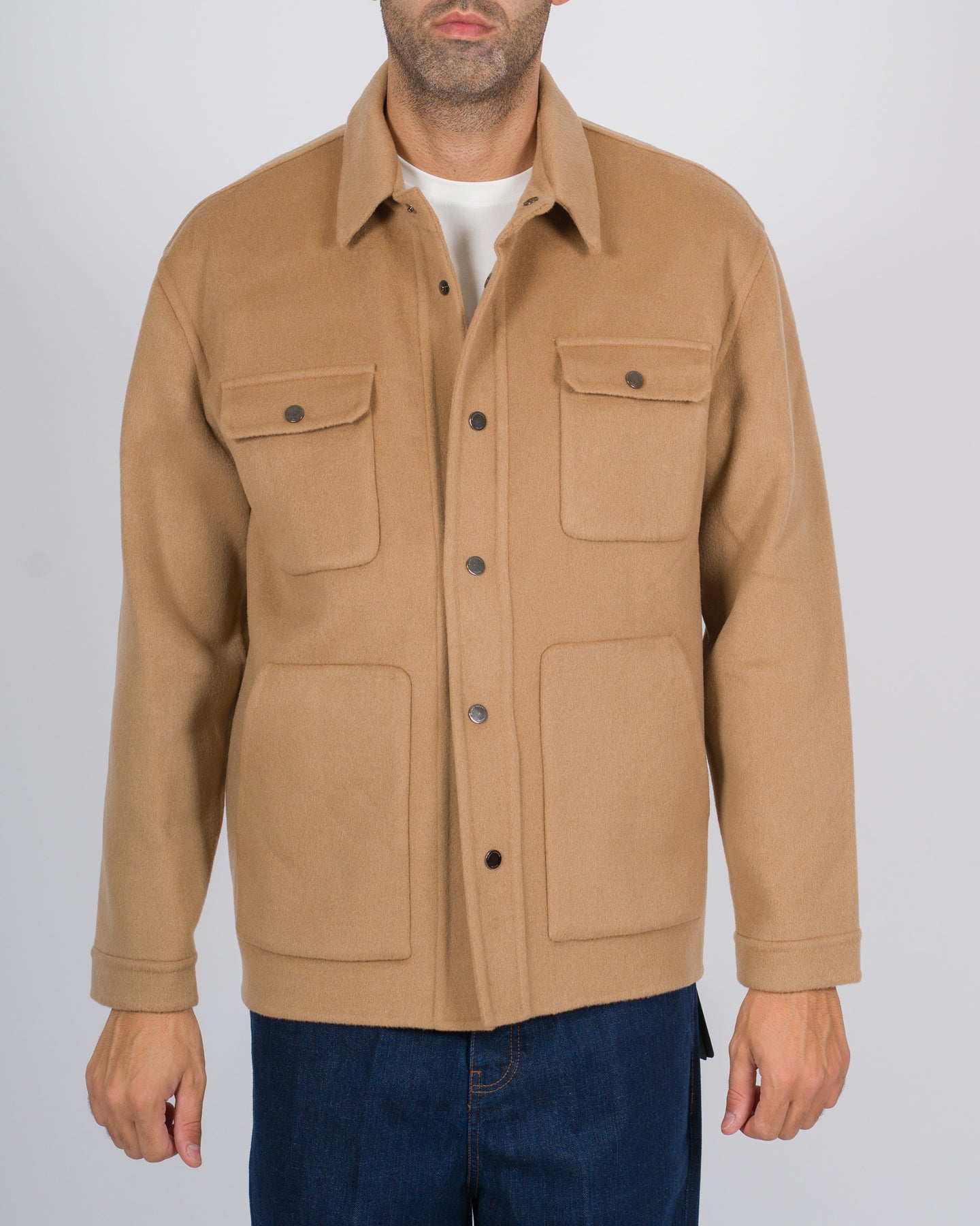 Un'eleganza rilassata che incontra la sartorialità italiana: questa overshirt firmata Paolo Pecora è realizzata in pura lana, lavorata con attenzione per garantire comfort e struttura al tempo stesso. Il design richiama le camicie utility, ma si eleva grazie alla mano morbida del tessuto e a un taglio versatile, perfetto come strato intermedio o come giacca leggera.Il modello presenta collo a camicia classico, tasche a toppa applicate sul petto e una chiusura frontale con bottoni a pressione che aggiunge praticità e un tocco contemporaneo. Le linee sono pulite e leggermente morbide, pensate per accompagnare il movimento con naturalezza, senza rinunciare a un'allure sofisticata.