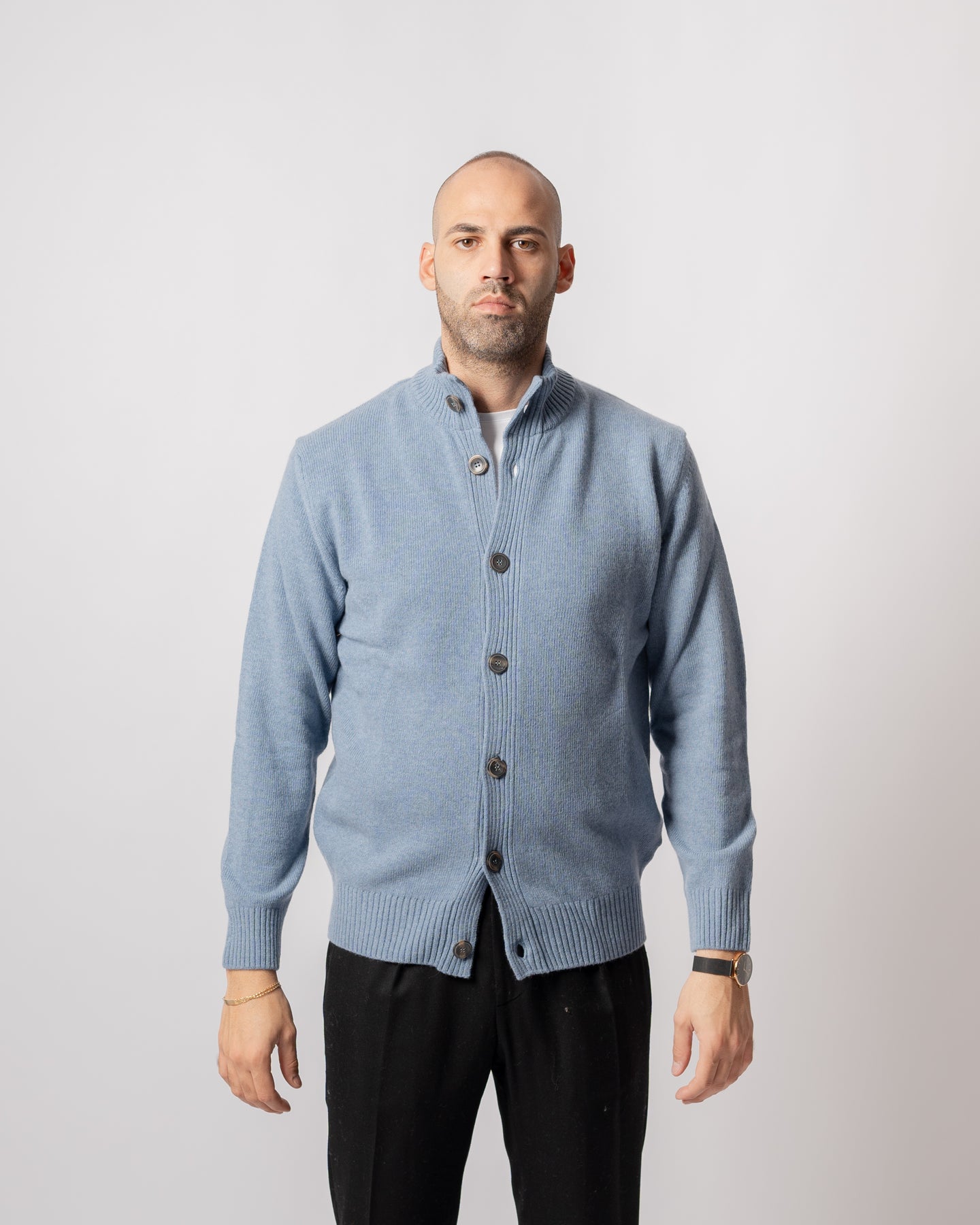 Giacca maglia manica lunga con chiusura bottoni in tessuto lana vergine.