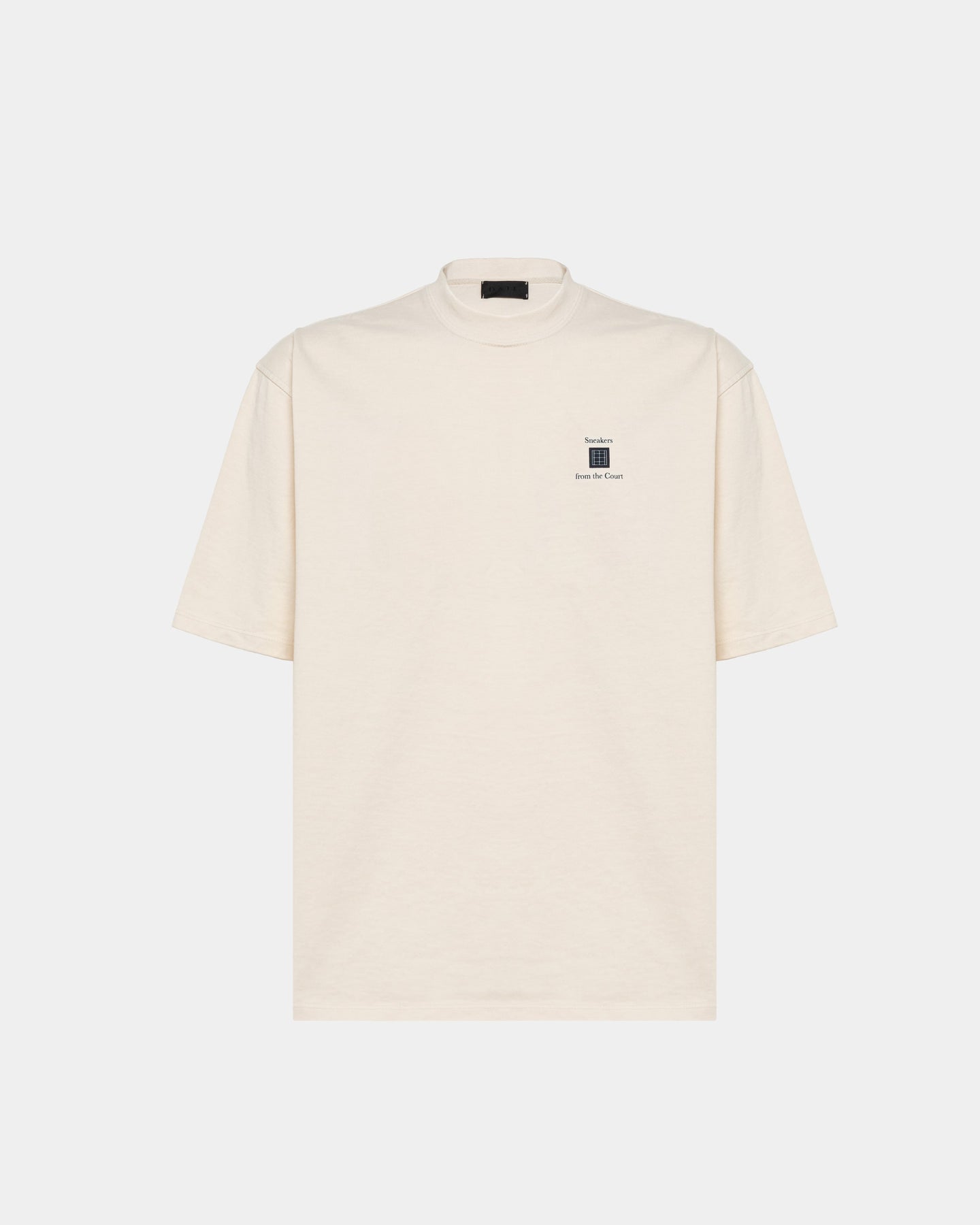 T-shirt mezza manica in tessuto cotone con stampa scritte blu.