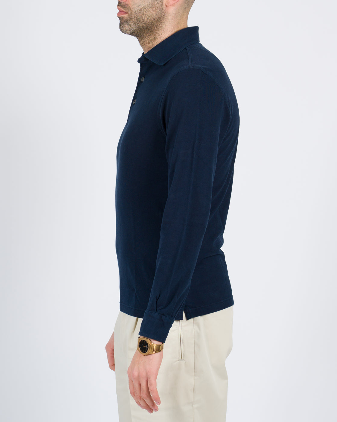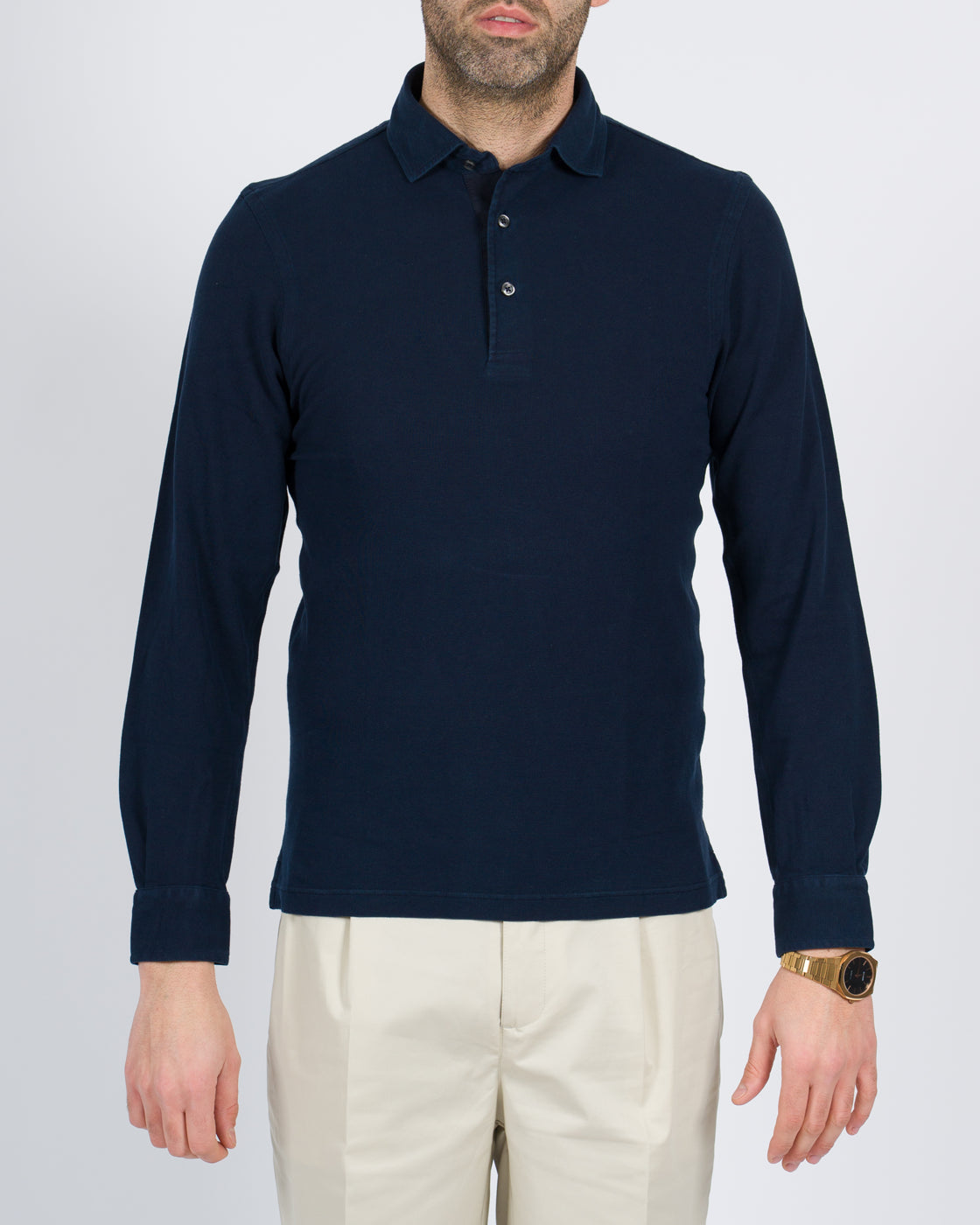 lo manica lunga con polsino camicia tessuto cotone piquet tre bottoni.
