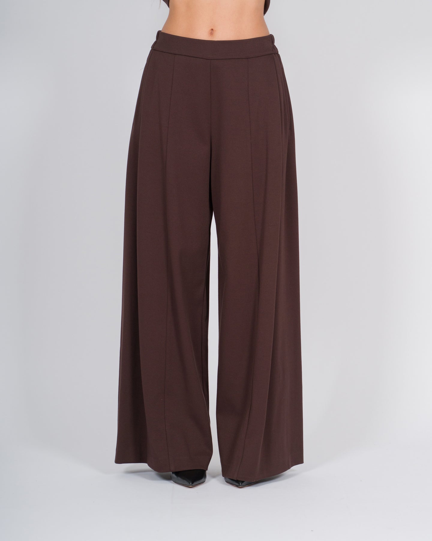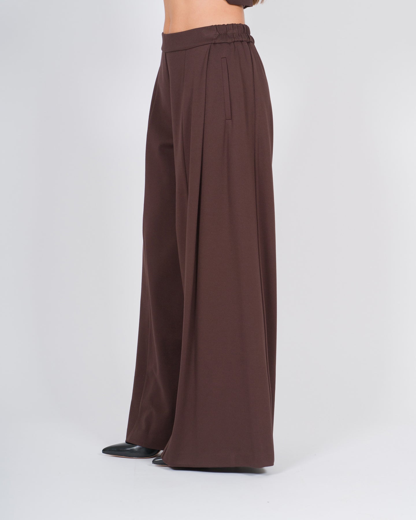 Un capo che unisce comfort e sofisticatezza, questi pantaloni morbidi in lana cadente della linea Meimej esaltano la silhouette con fluidità e leggerezza. Il fondo largo e il mezzo elastico al bustino garantiscono una vestibilità confortevole e armoniosa, mentre le tasche a fili aggiungono un dettaglio funzionale e discreto, in perfetta sintonia con l'eleganza minimal del design.Realizzati in lana morbida di alta qualità, i pantaloni cadono con naturalezza lungo le gambe, valorizzando ogni movimento. La tonalità marrone caldo conferisce profondità e versatilità, rendendoli ideali da abbinare a bluse leggere, maglioni o blazer strutturati per un look contemporaneo e raffinato.