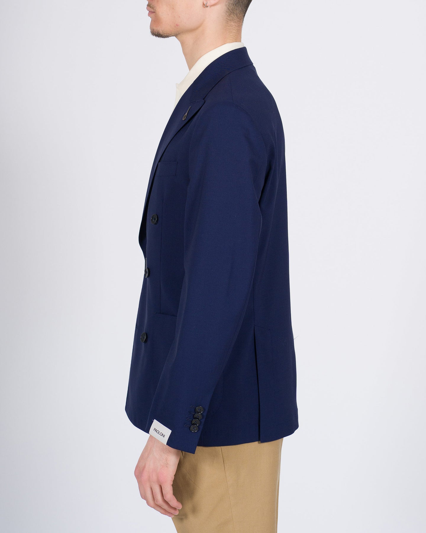 Giacca a doppio petto realizzata in tessuto tela di lana colore blu, con petto a lancia e vestibilità classica. Elegante e sartoriale, valorizza la silhouette con dettagli curati e design senza tempo.Perfetta per look formali o business, combina stile raffinato, comfort e qualità dei materiali per un outfit distintivo e sofisticato.