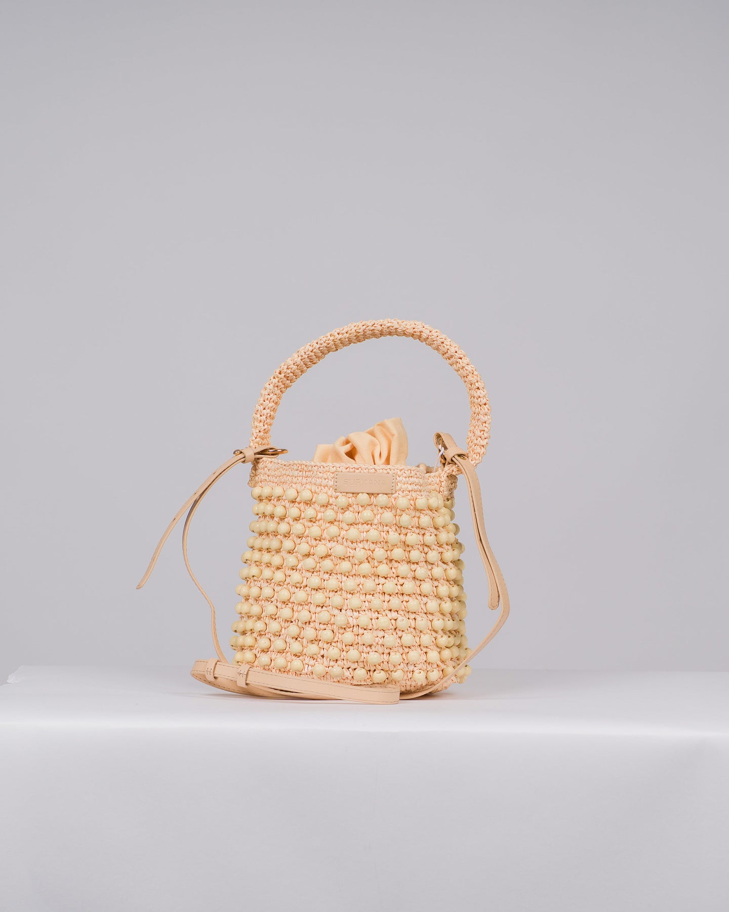 Borsa Secchiello in Rafia Beige
