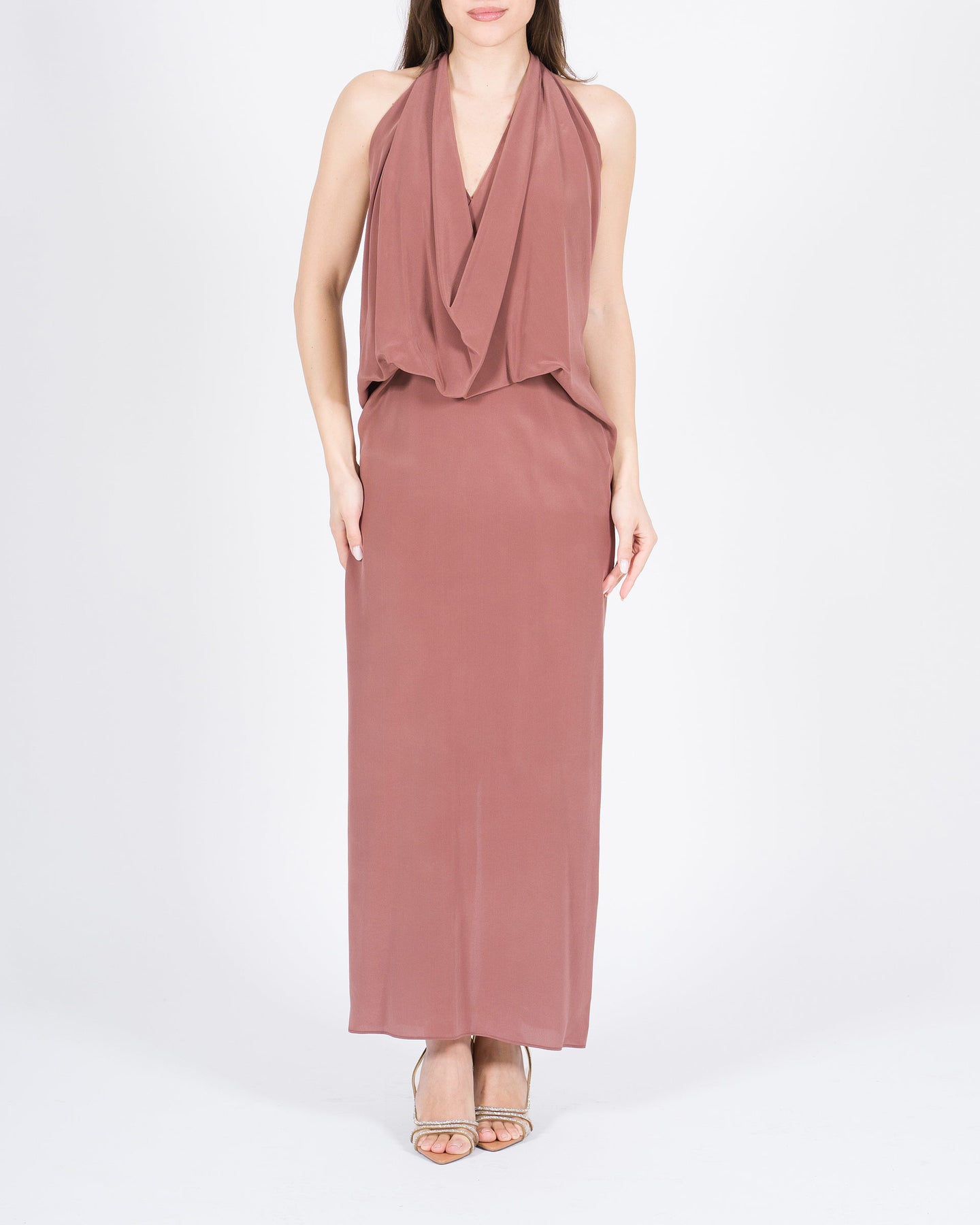 Fluidità elegante, silhouette morbida, stile contemporaneo.L'abito ALYSI con scollo all'americana sciallato avvolge la figura con leggerezza, unendo linee fluide a dettagli raffinati per un look minimal e sofisticato.Un capo versatile, perfetto per occasioni eleganti o outfit discreti e ricercati.