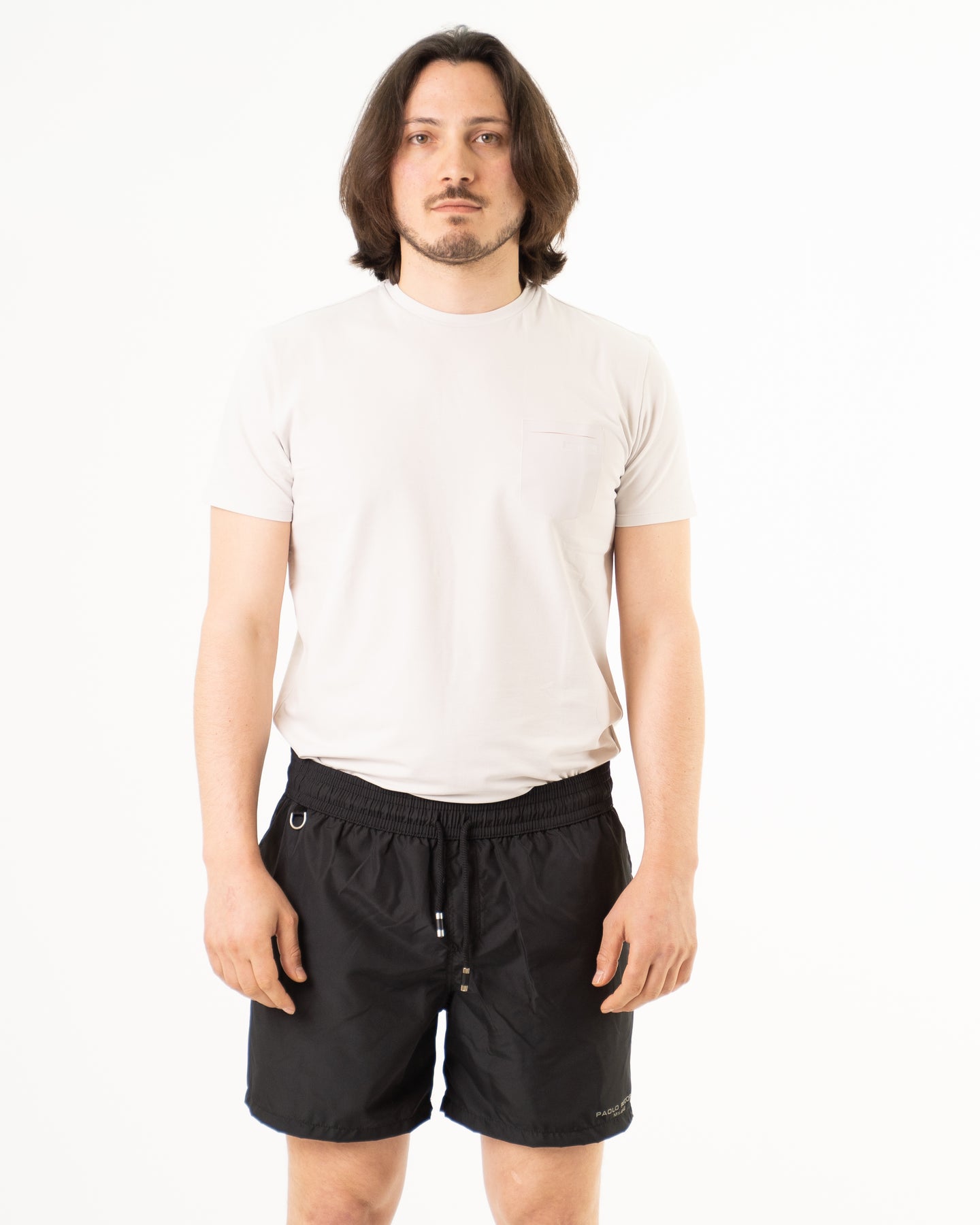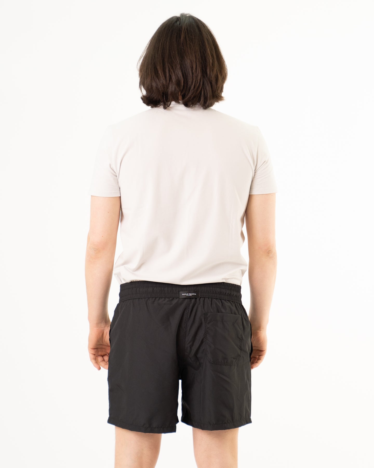 Costume da bagno colore nero con tasca posteriore e laterali.
