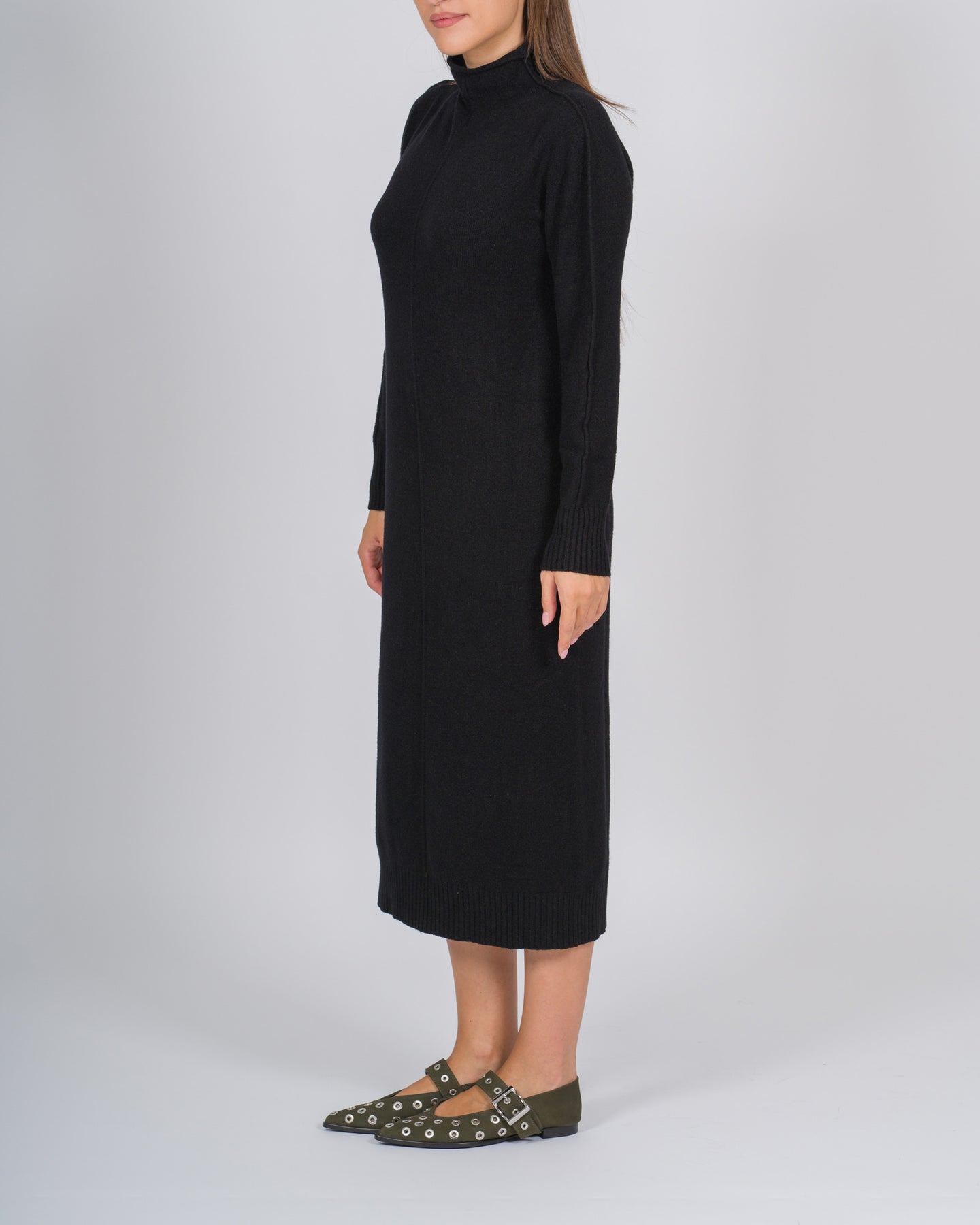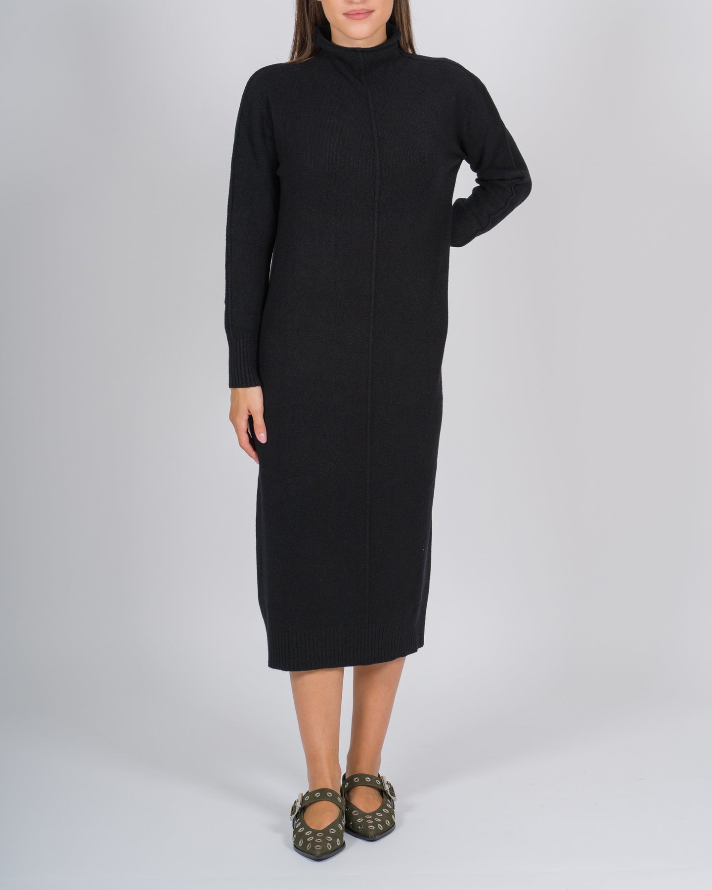 Minimal e sofisticato, questo abito in tessuto di viscosa effetto maglia unisce comfort e femminilità. La linea essenziale è arricchita dal collo lupetto e dalla riga centrale a contrasto che slancia la silhouette. Perfetto sia per il giorno con anfibi o sneakers, sia per la sera con stivali o tacchi.Dettagli:Tessuto: viscosa effetto magliaColore: neroCollo lupettoManiche lungheRiga centrale sul davantiVestibilità regolare