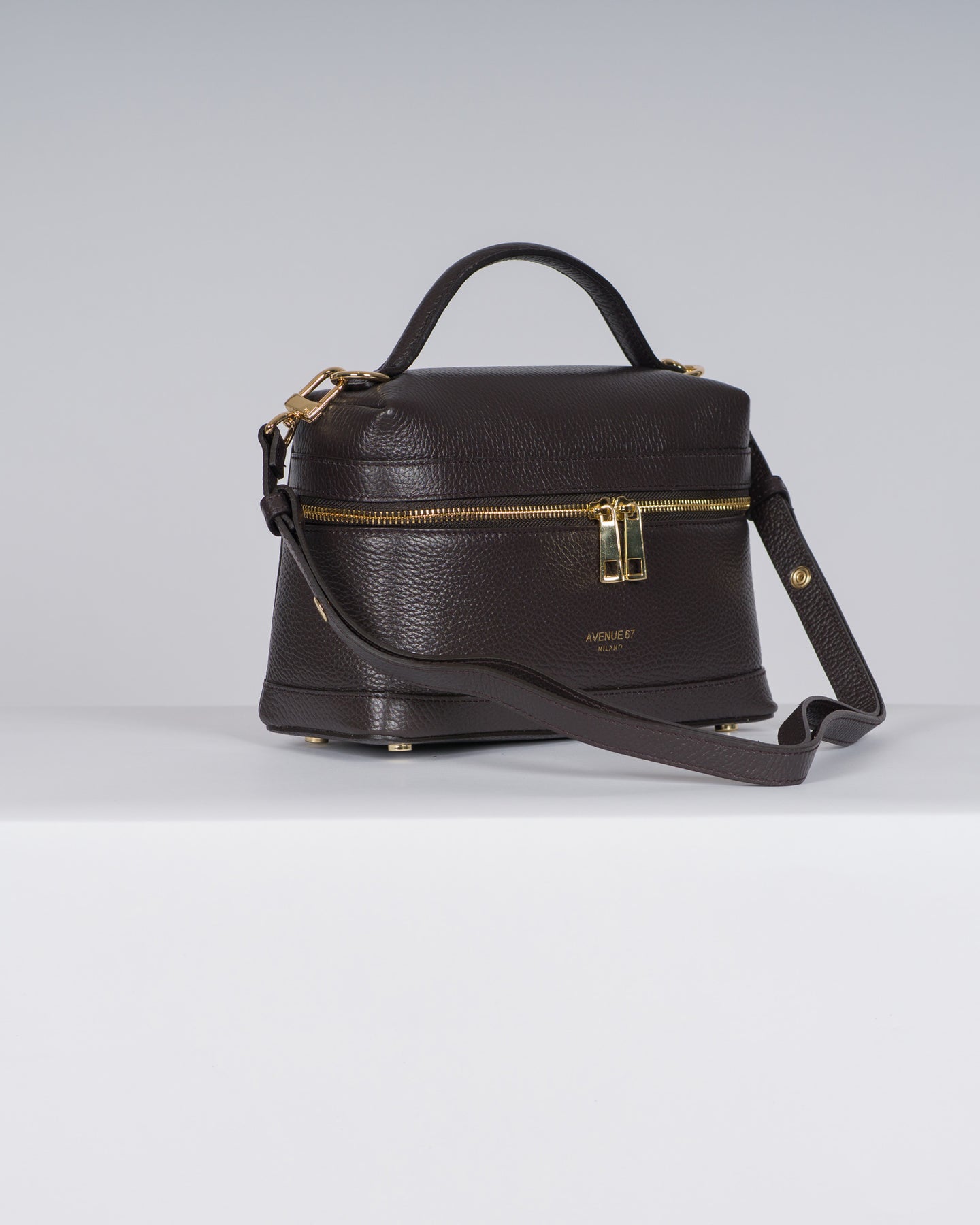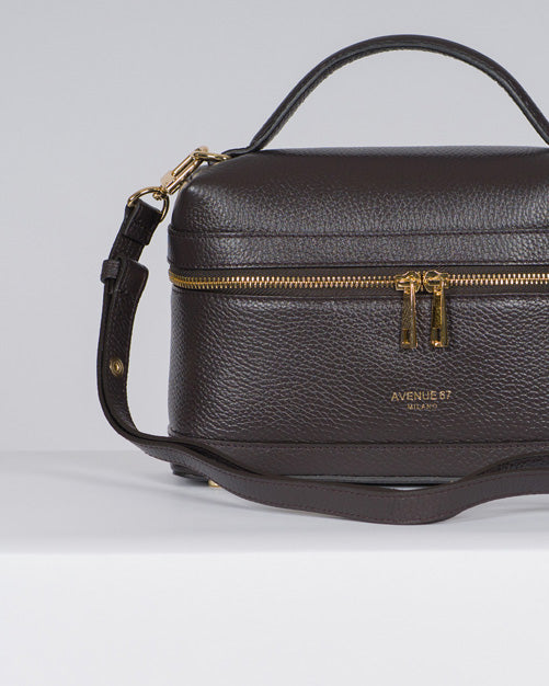 Un accessorio elegante e versatile, pensato per accompagnare ogni momento della giornata. La borsa modello Case di Avenue 67 è realizzata in pelle liscia color moro, morbida al tatto e resistente nel tempo. La silhouette strutturata e le linee pulite conferiscono un carattere raffinato, mentre la dimensione compatta la rende perfetta sia per il quotidiano sia per occasioni più eleganti.Il design minimalista valorizza la qualità dei materiali e la manifattura, rendendo la borsa un capo distintivo e senza tempo, espressione dello stile contemporaneo italiano.DETTAGLI:Materiale: Pelle tipo dollaroDimensioni:-Larghezza: 25 cm-Altezza: 17 cm-Profondità: 9 cm-Chiusura: Cerniera a doppio cursore-Interno: Unico vano con tasca interna con zipManico: FissoTracolla: In pelle, rimovibile e regolabile fino a 130 cm
