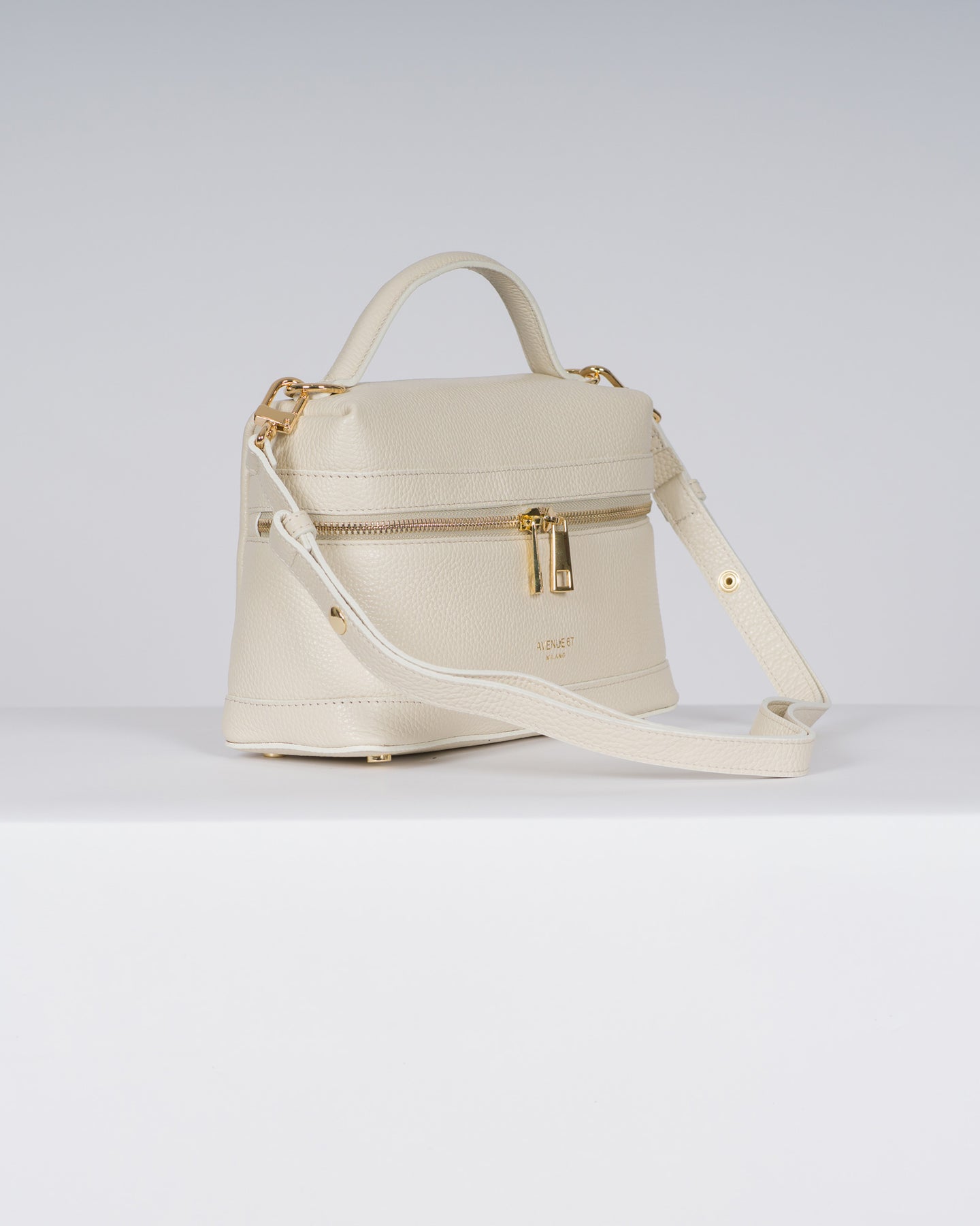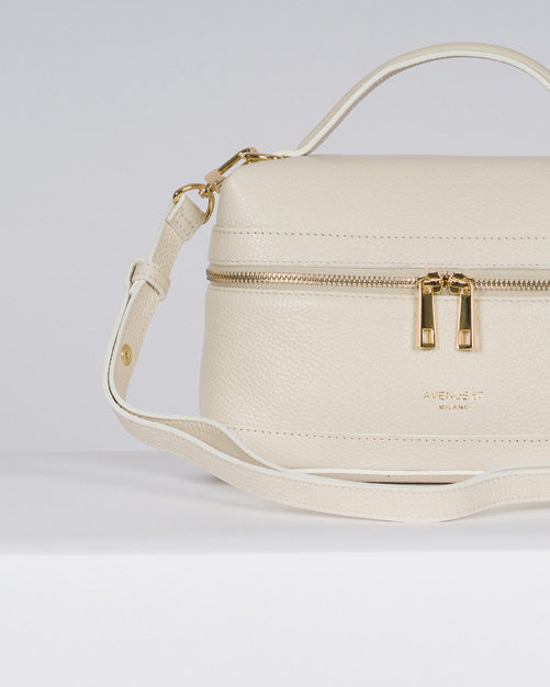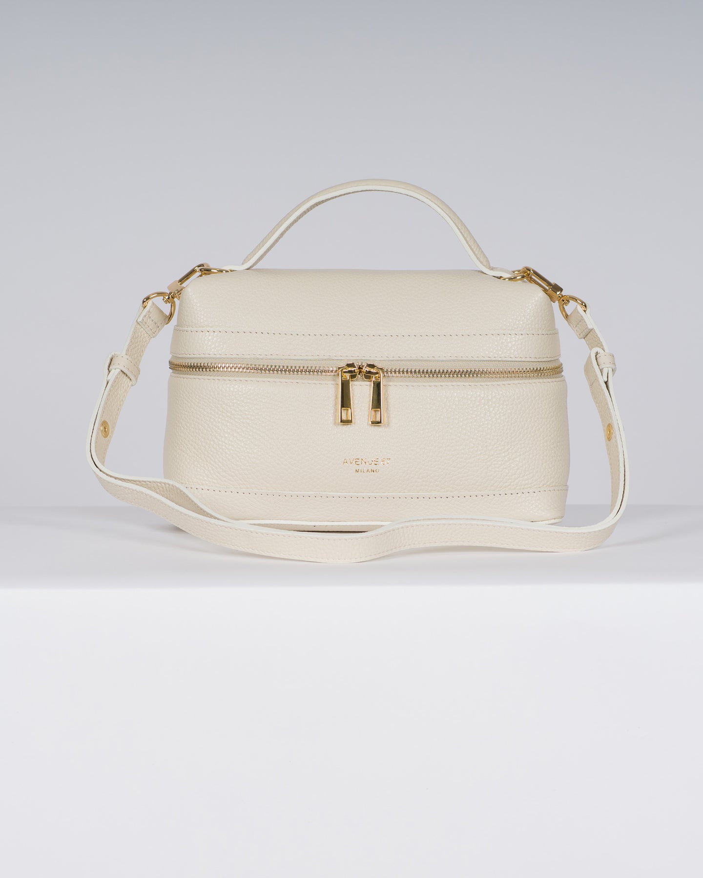 Un accessorio elegante e versatile, pensato per accompagnare ogni momento della giornata. La borsa modello Case di Avenue 67 è realizzata in pelle liscia color panna, morbida al tatto e resistente nel tempo. La silhouette strutturata e le linee pulite conferiscono un carattere raffinato, mentre la dimensione compatta la rende perfetta sia per il quotidiano sia per occasioni più eleganti.Il design minimalista valorizza la qualità dei materiali e la manifattura, rendendo la borsa un capo distintivo e senza tempo, espressione dello stile contemporaneo italiano.DETTAGLI:Materiale: Pelle tipo dollaroDimensioni:-Larghezza: 25 cm-Altezza: 17 cm-Profondità: 9 cm-Chiusura: Cerniera a doppio cursore-Interno: Unico vano con tasca interna con zipManico: FissoTracolla: In pelle, rimovibile e regolabile fino a 130 cm