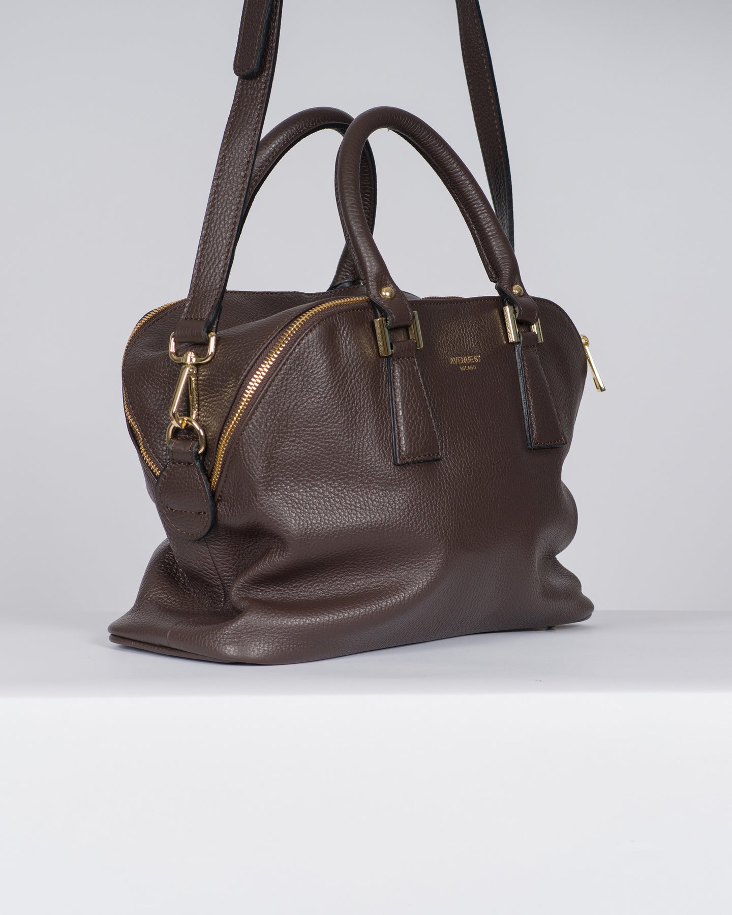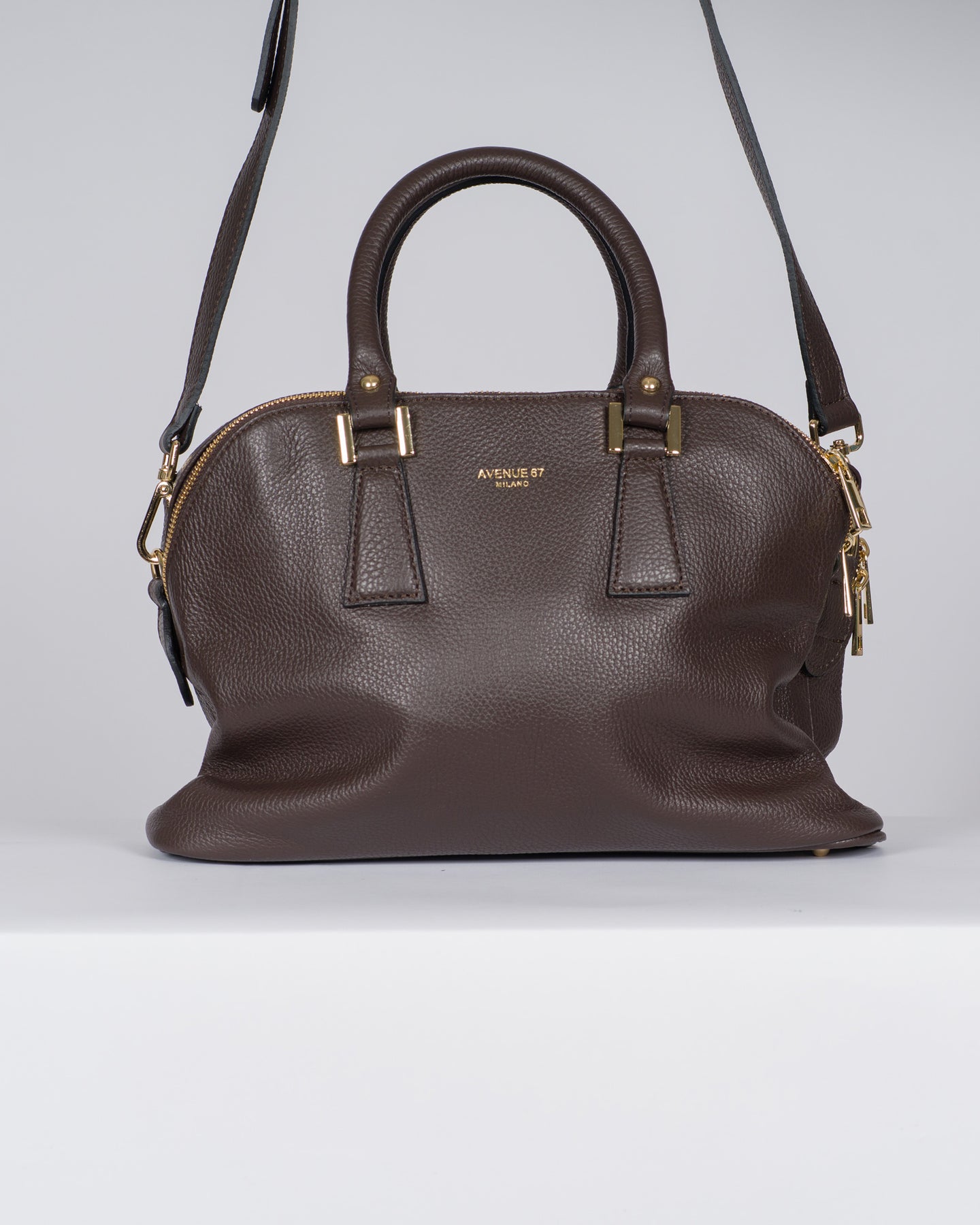 La borsa Fandango XS di Avenue 67 è un accessorio compatto e raffinato, realizzato in pelle tipo dollaro di alta qualità, con una superficie morbida e resistente. La silhouette morbida e leggermente strutturata conferisce al capo un carattere elegante e senza tempo. La chiusura con doppia zip assicura praticità e sicurezza.Il design include un manico fisso e una tracolla regolabile e removibile, permettendo diverse modalità di portabilità: a mano, a spalla o cross-body. L'interno è dotato di due vani separati, una tasca interna con zip e una tasca portaoggetti, ideali per organizzare gli oggetti essenziali con discrezione.Perfetta per l'uso quotidiano o per occasioni speciali, questa borsa rappresenta l'equilibrio ideale tra praticità e raffinatezza, espressione dello stile contemporaneo italiano.Dettagli: -Materiale: pelle tipo dollaro-Colore: moro-Chiusura: doppia zip-Manico: fisso-Tracolla: regolabile e removibile-Interno: doppio vano separato, tasca interna con zip, tasca portaoggetti-Dimensioni: Larghezza 35 cm × Altezza 24 cm × Profondità 14 cm-Made in Italy