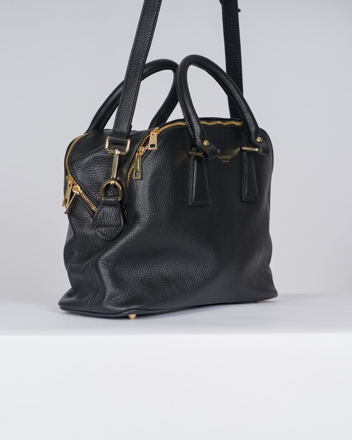 La borsa Fandango XS di Avenue 67 è un accessorio raffinato e funzionale, realizzato in pelle tipo dollaro di alta qualità, con una superficie morbida e resistente. La silhouette morbida e leggermente strutturata conferisce al capo un carattere elegante e senza tempo. La chiusura con doppia zip assicura praticità e sicurezza.Il design include un manico fisso e una tracolla regolabile e removibile, permettendo diverse modalità di portabilità: a mano, a spalla o cross-body. L'interno è dotato di due vani separati, una tasca interna con zip e due tasche portaoggetti, ideali per organizzare gli oggetti essenziali con discrezione.Perfetta per l'uso quotidiano o per occasioni speciali, questa borsa rappresenta l'equilibrio ideale tra praticità e raffinatezza, espressione dello stile contemporaneo italiano.Dettagli:-Materiale: pelle tipo dollaro-Colore: nero-Chiusura: doppia zip-Manico: fisso-Tracolla: regolabile e removibile-Interno: doppio vano separato, tasca interna con zip, due tasche portaoggetti-Dimensioni: Larghezza 35 cm × Altezza 24 cm × Profondità 14 cm-Made in Italy