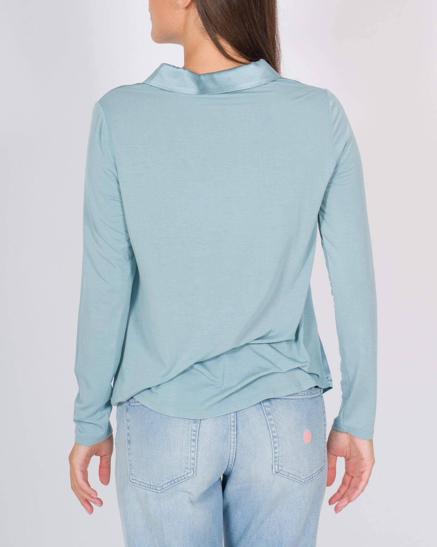 Questa blusa-camicia unisce eleganza e comfort grazie all'accostamento raffinato di materiali: il davanti in pura seta regala lucentezza e un tocco sofisticato, mentre il retro e le maniche in viscosa offrono morbidezza e vestibilità fluida. Il design è completato da una chiusura frontale con bottoni e un colletto classico, per un look femminile e versatile, perfetto da indossare sia in contesti formali che più casual.Dettagli tecnici:Chiusura bottoniColletto camicia Tessuto: seta e viscosa Colore: tiffanyLa modella indossa la taglia M ed è alta 1.70.