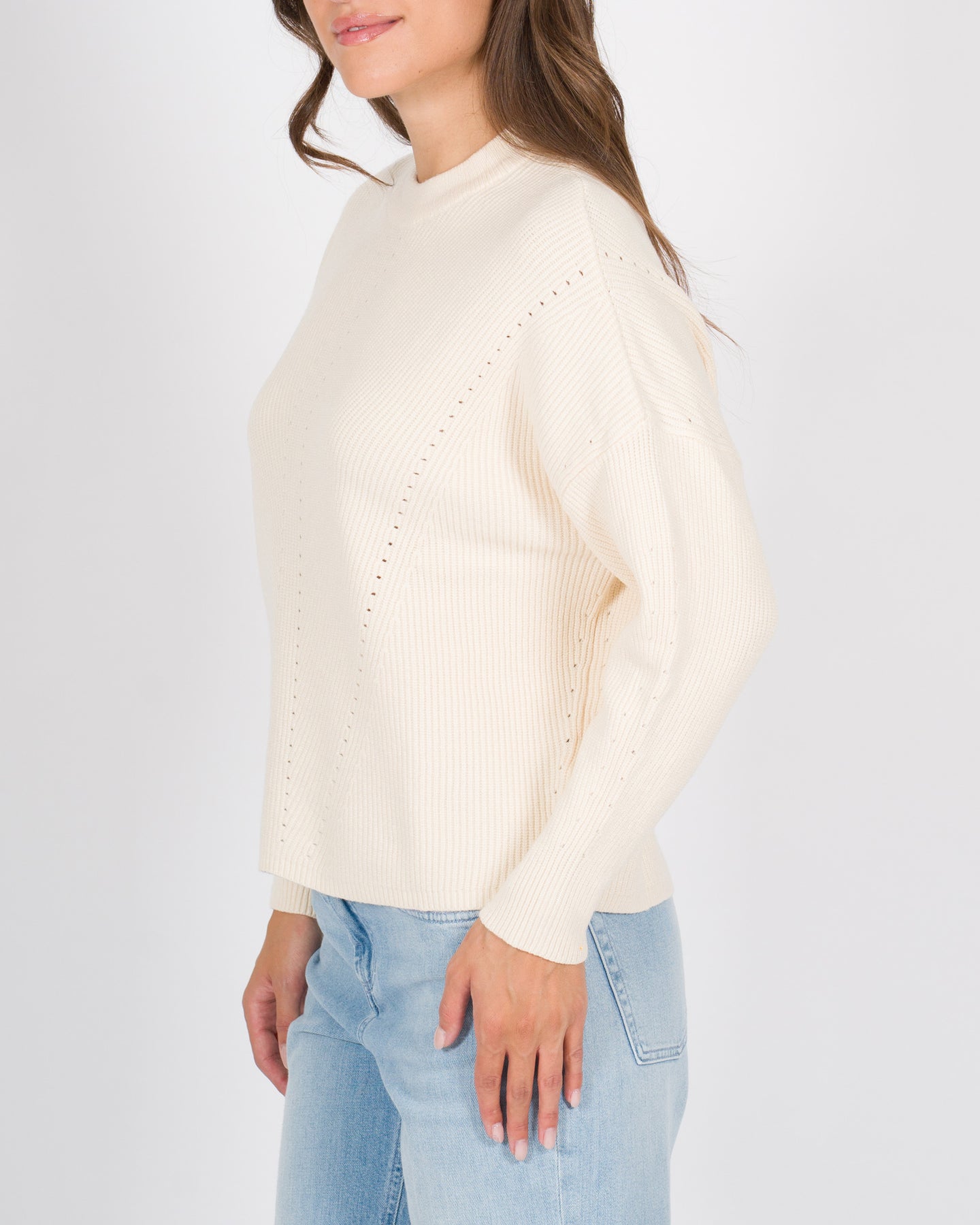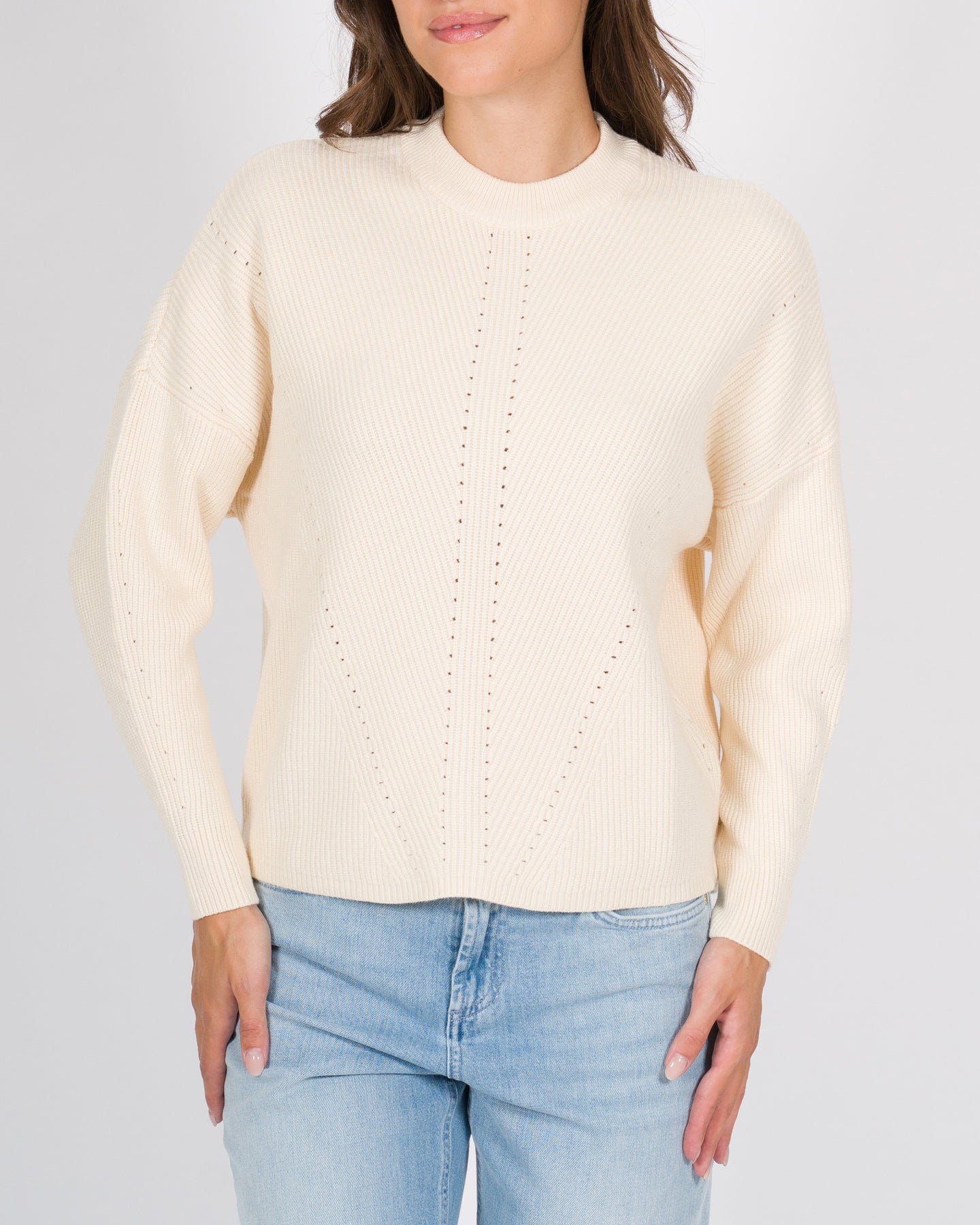 Maglia manica lunga realizzata in viscosa con lavorazione a costine, che dona texture e leggerezza al capo. Il girocollo classico e la vestibilità regolare, la rendono un capo versatile e confortevole, perfetto sia per look casual che più curati.Dettagli tecnici:•Lavorazione a costine •Manica lunga •Tessuto: viscosa•Colore: pannaLa modella indossa la taglia S/M ed è alta 1.70
