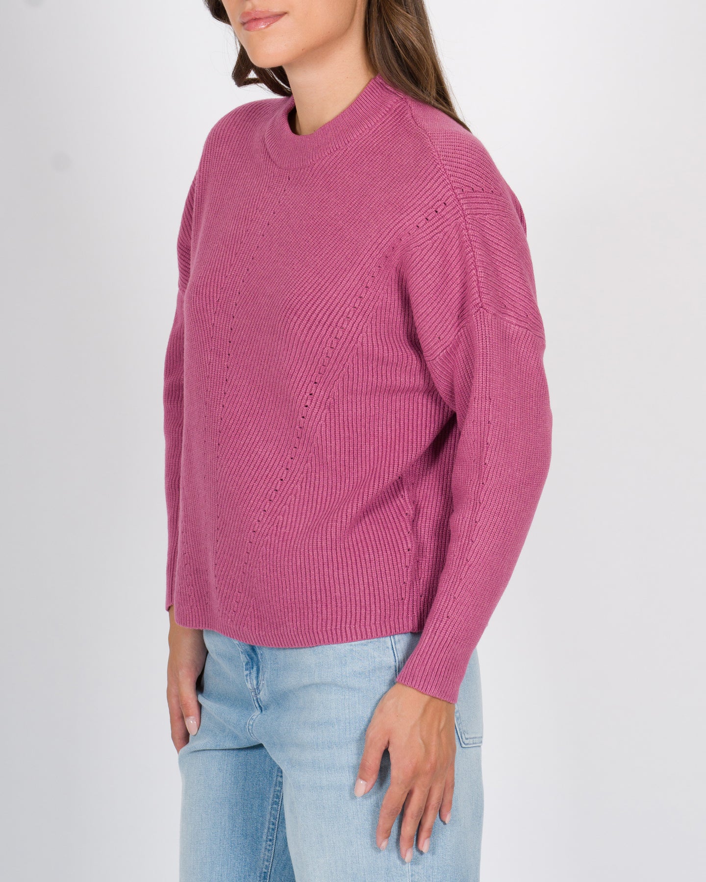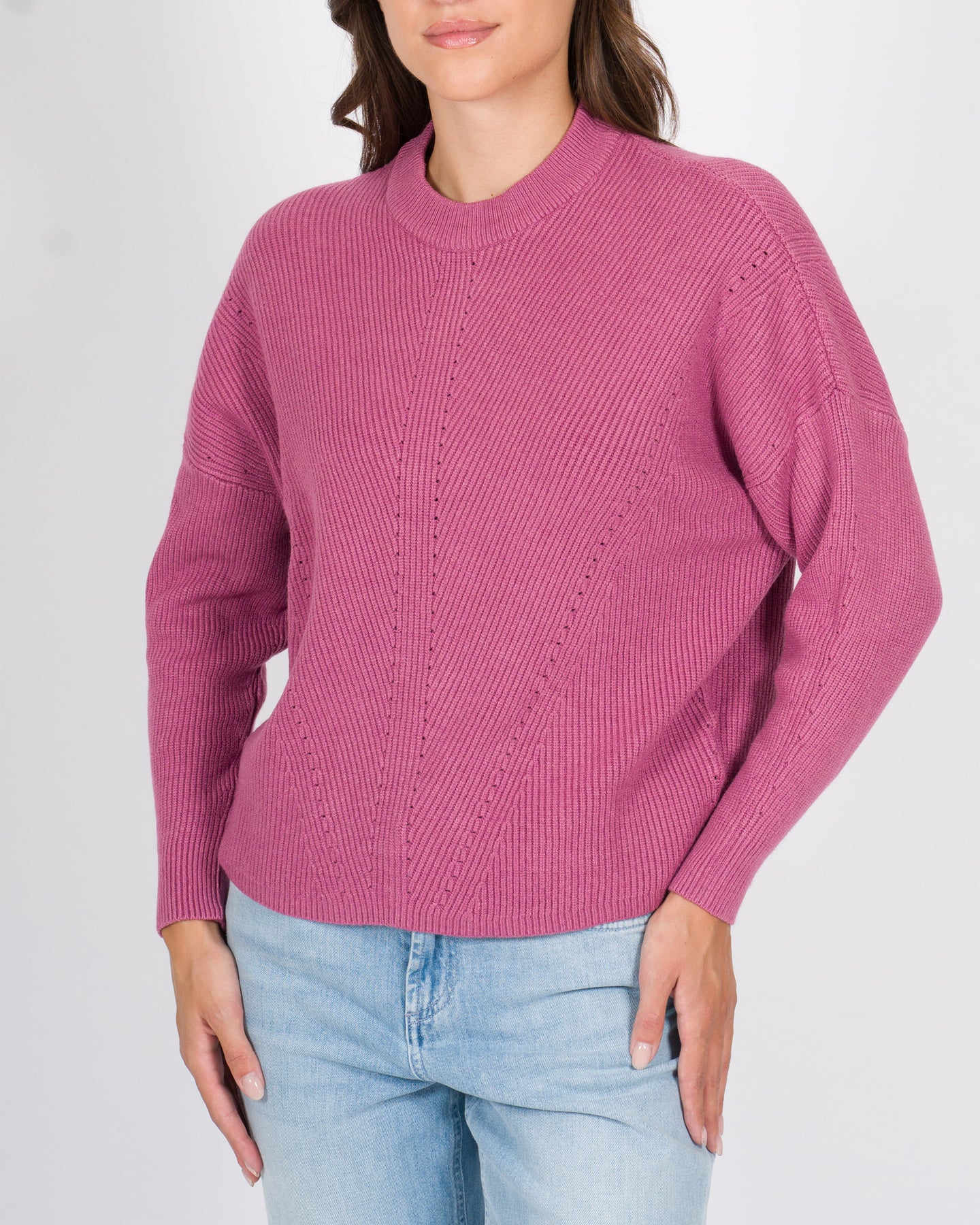 Maglia manica lunga realizzata in viscosa con lavorazione a costine, che dona texture e leggerezza al capo. Il girocollo classico e la vestibilità regolare, la rendono un capo versatile e confortevole, perfetto sia per look casual che più curati.Dettagli tecnici:Lavorazione a costine Manica lunga Tessuto: viscosaColore: rosaLa modella indossa la taglia S/M ed è alta 1.70