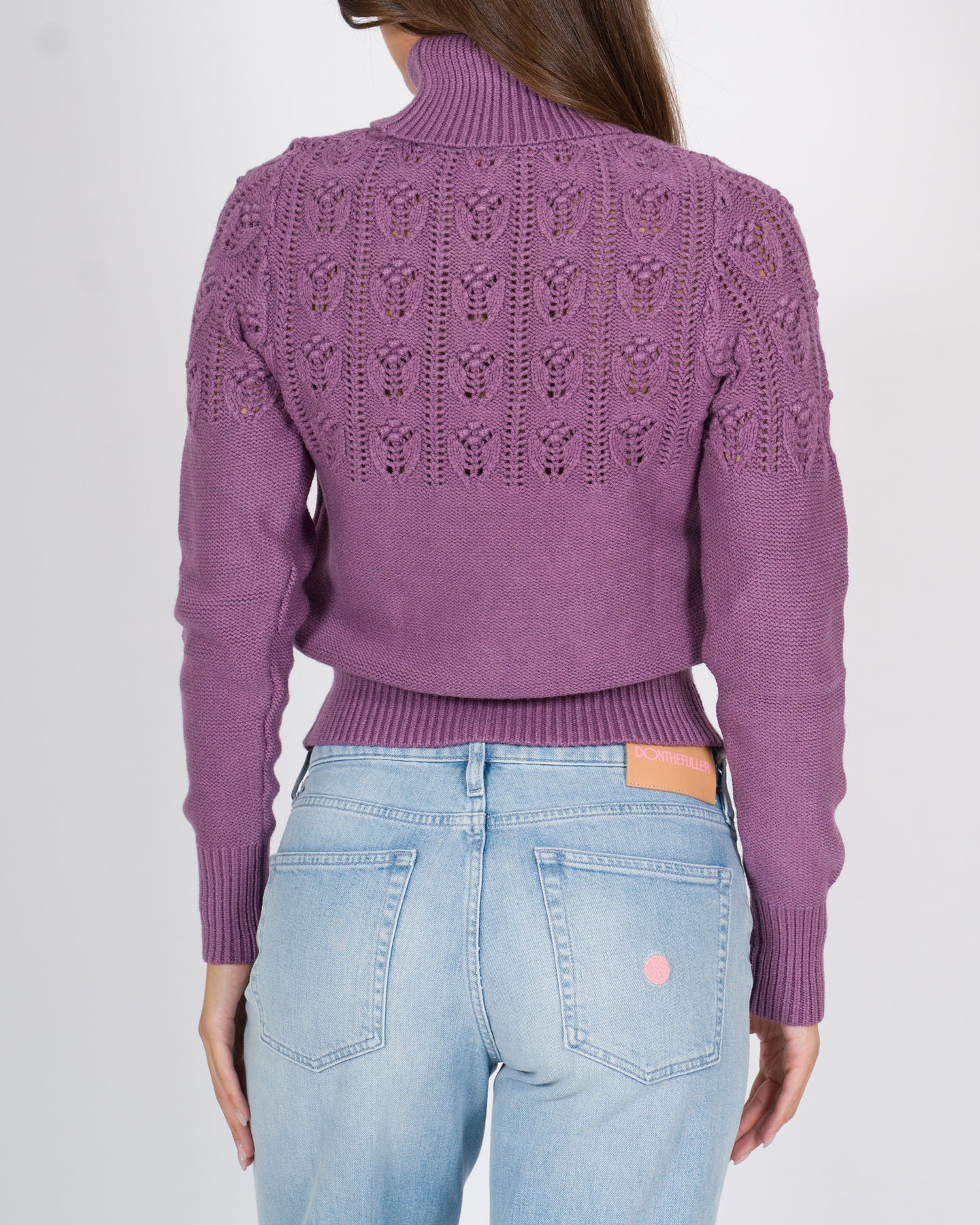 Dal fascino sofisticato e femminile, questo pullover collo alto unisce comfort e stile grazie a una lavorazione traforata che decora con discrezione il davanti, le spalle e la parte posteriore del capo.Realizzata in morbida viscosa avvolgente, è rifinita con bordature a costine su collo, polsini e fondo, per una mavestibilità definita e una maggiore stabilità delle forme.Dettagli tecnici:Maniche lunghe con polsini a costeFondo con bordatura a coste Vestibilità regolare Tessuto: viscosaColore: melanzanaLa modella indossa la taglia S/M ed è alta 1.70.