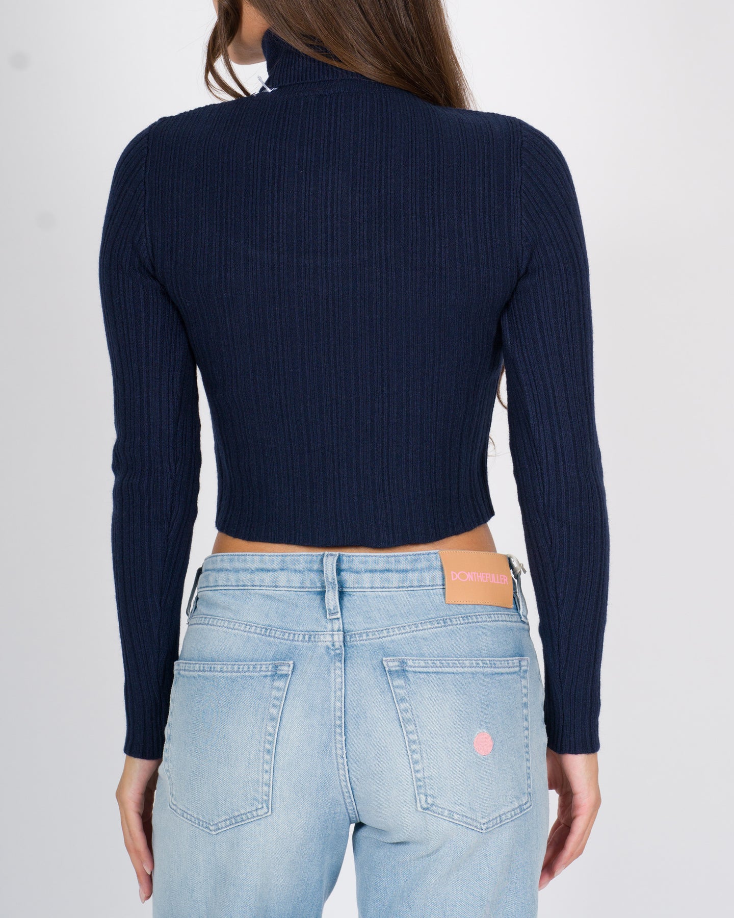 Maglia a manica lunga dal taglio moderno e femminile, realizzata in morbido tessuto di viscosa con raffinata lavorazione a costine che esalta le linee del corpo. Il design presenta un lupetto minimal sul retro e una scollatura profonda sul davanti, creando un interessante gioco di contrasti tra copertura e sensualità. La vestibilità cropped aggiunge un tocco audace e contemporaneo, perfetto da abbinare a capi a vita alta per un look deciso ma elegante.Dettagli tecnici:Scollatura profondaTessuto: viscosaVestibilità: croppedColore: bluLa modella indossa la taglia S/M ed è alta 1.70.