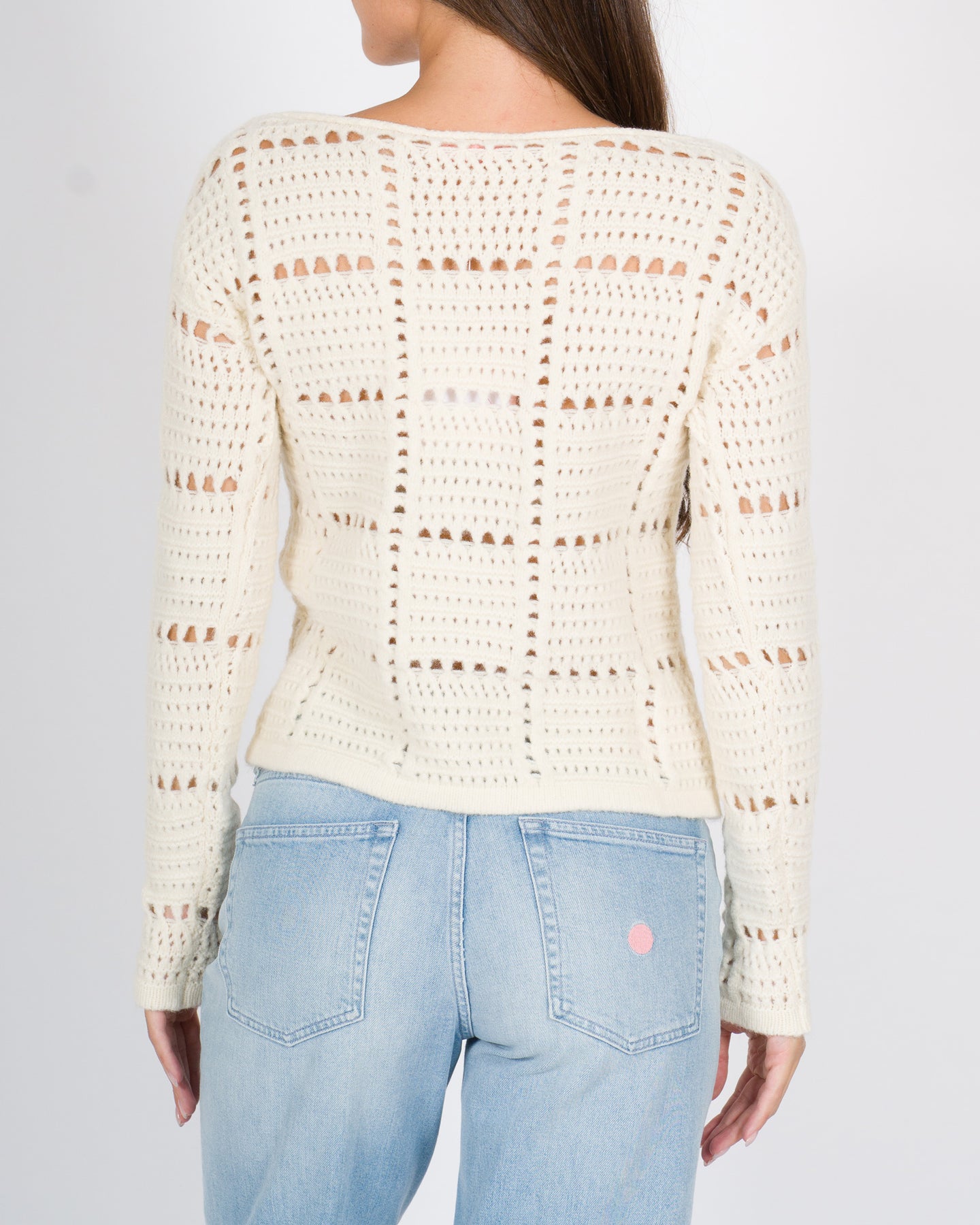Maglia cropped dallo stile fresco e femminile, realizzata in tessuto di viscosa leggero e confortevole. La lavorazione traforata aggiunge un tocco raffinato e arioso, perfetto per creare giochi di trasparenze. Un capo versatile dal taglio moderno, ideale da abbinare a pantaloni a vita alta o gonne per un look contemporaneo e sofisticato.Dettaglio tecnici:Lavorazione traforataTessuto: viscosaColore: pannaLa modella indossa la taglia S/M ed è alta 1.70
