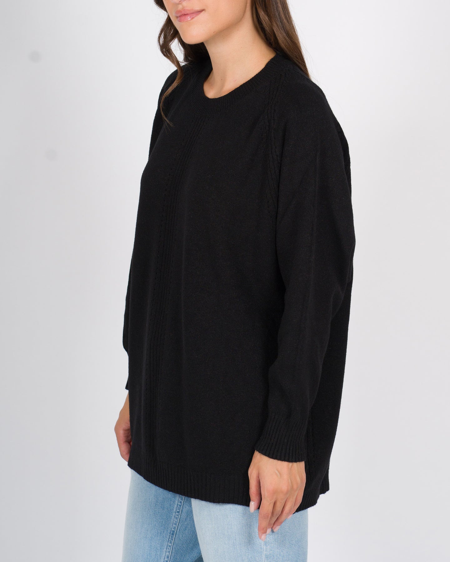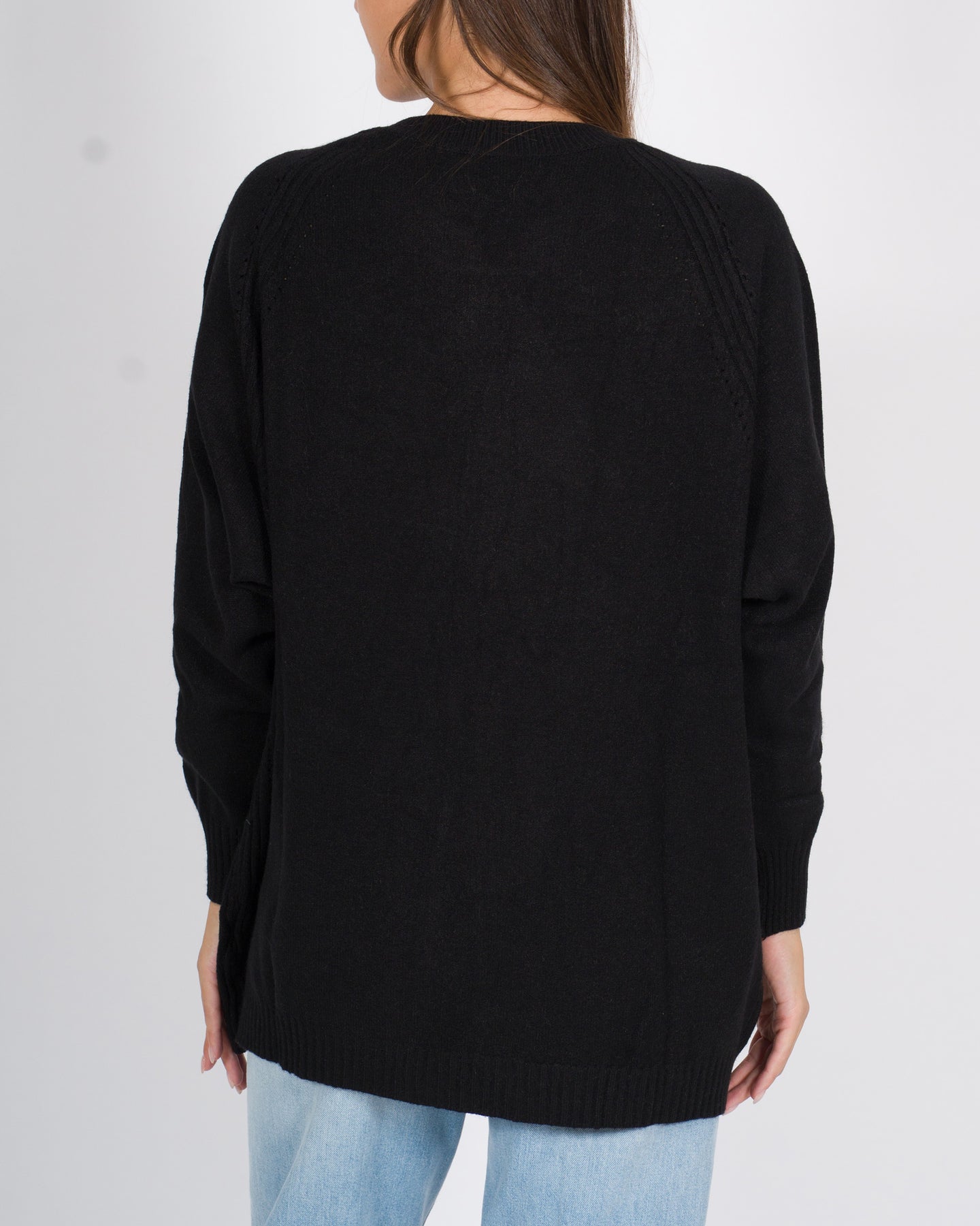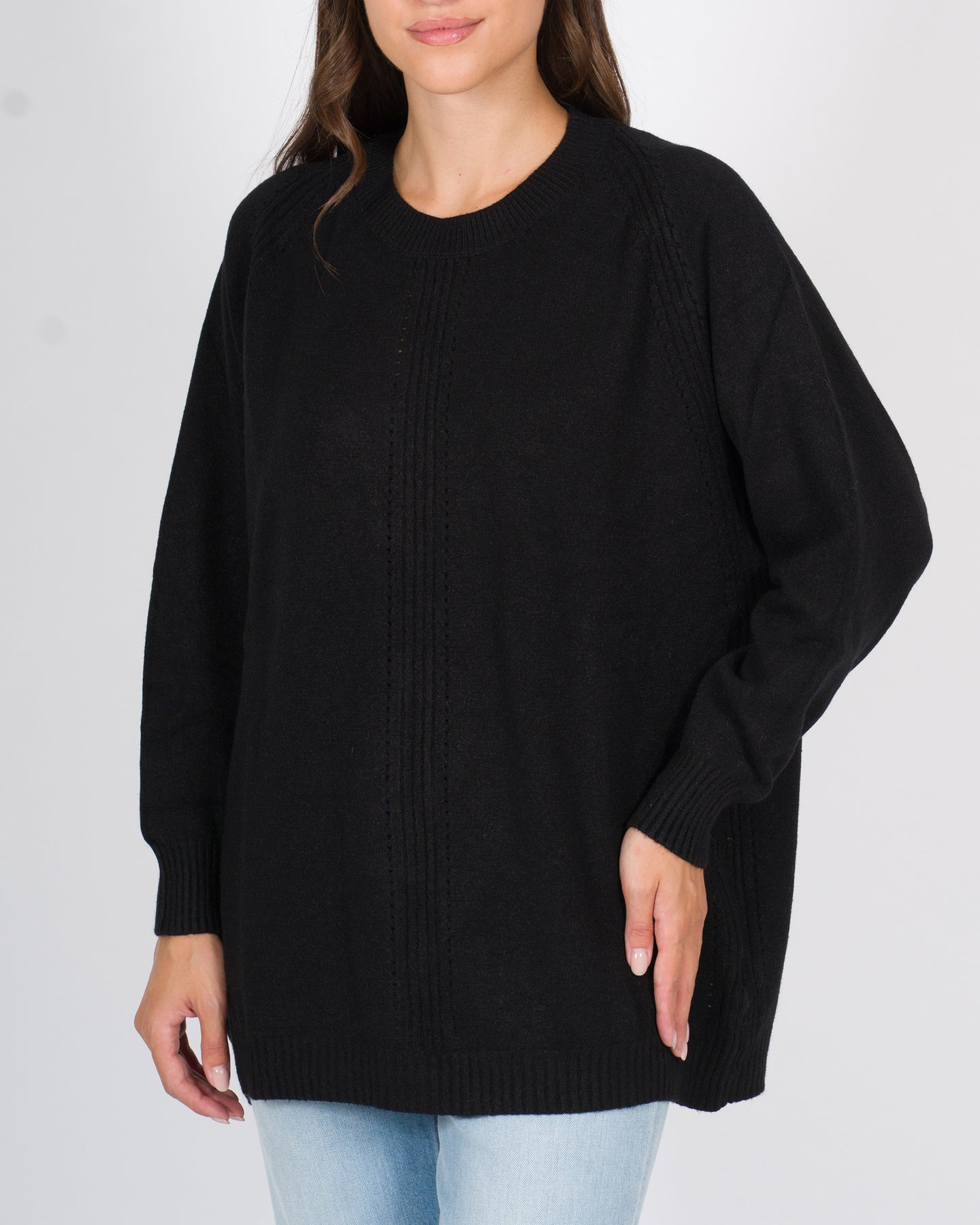 Capo versatile e avvolgente, perfetto per aggiungere un tocco di stile rilassato ma curato i look quotidiani. Pullover realizzato in morbida e calda viscosa, questa maxi maglia con maniche lunghe è pensata per offrire comfort e stile in un unico capo. La linea è morbida oversize.I dettagli distintivi riguardano la lavorazione a coste posizionata al centro e lungo le spalle e la manica raglan.Dettagli tecnici:Manica raglanLavorazione a coste centrale Tessuto: viscosa Colore: neroLa modella indossa la taglia S/M ed è alta 1.70.