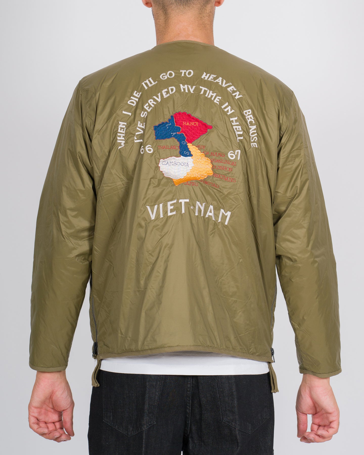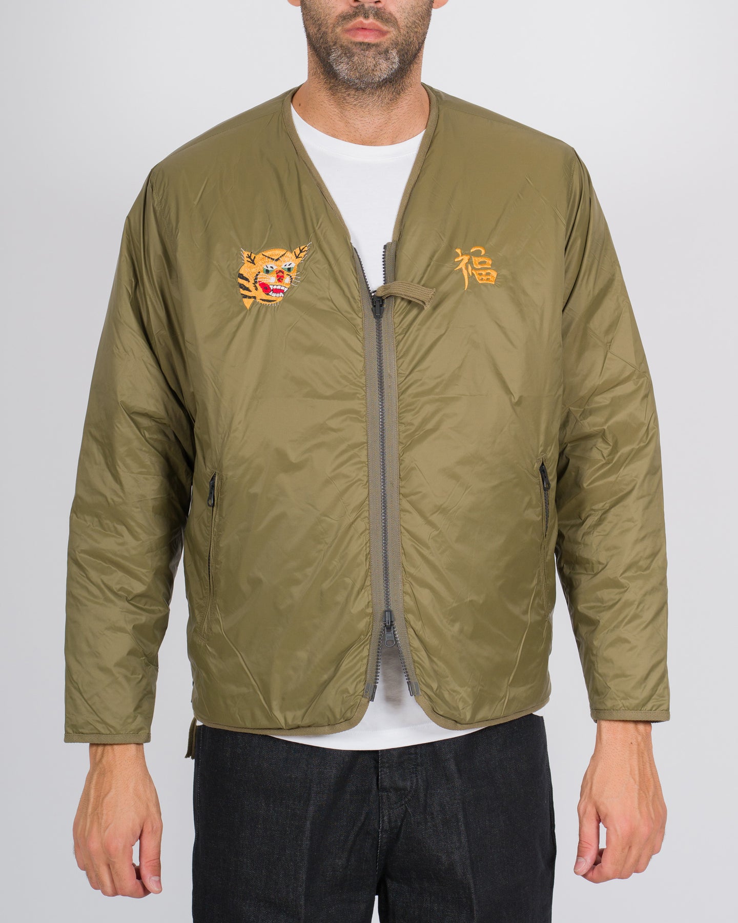 Un capo contemporaneo che unisce leggerezza e carattere, il giubbotto Taion è realizzato in tessuto tecnico leggero e imbottitura da 100 grammi, perfetto per le mezze stagioni o come strato intermedio. Il modello presenta una chiusura full zip, scollo bomber e tasche frontali con zip, unendo funzionalità e stile minimalista.Il dettaglio distintivo è la cucitura a forma di tigre sul davanti, simbolo di forza e dinamismo, accompagnata dal logo Vietnam sul retro, che firma il capo con eleganza. Il colore verde conferisce freschezza al design, rendendolo versatile e facilmente abbinabile a look casual e streetwear.
