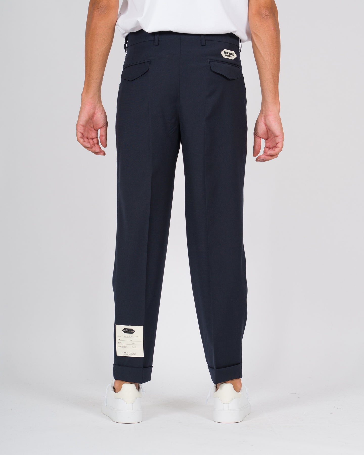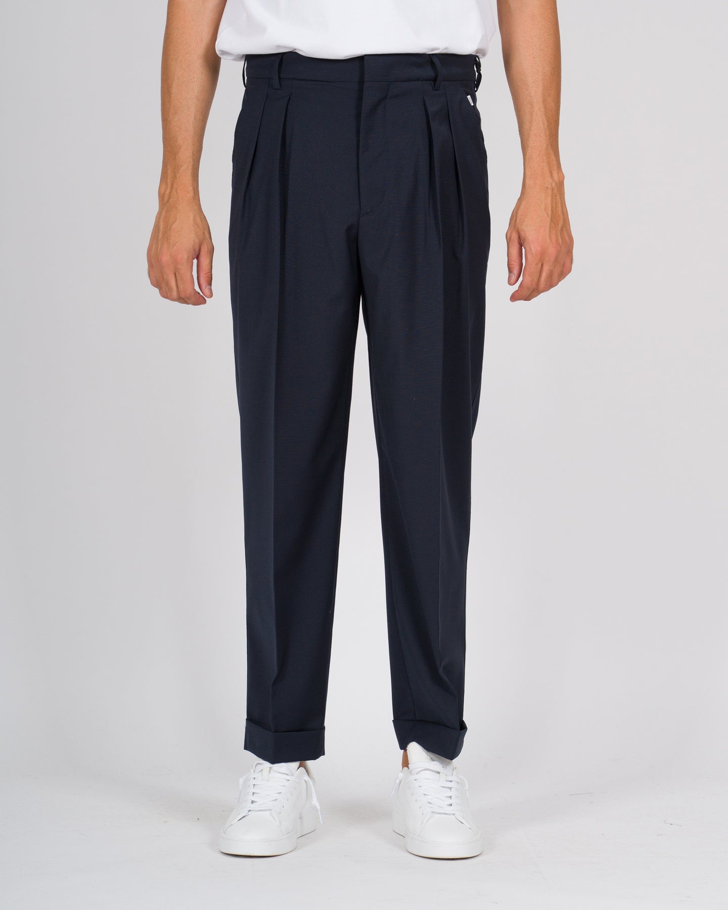 Pantalone doppia pince con risvolto blu
