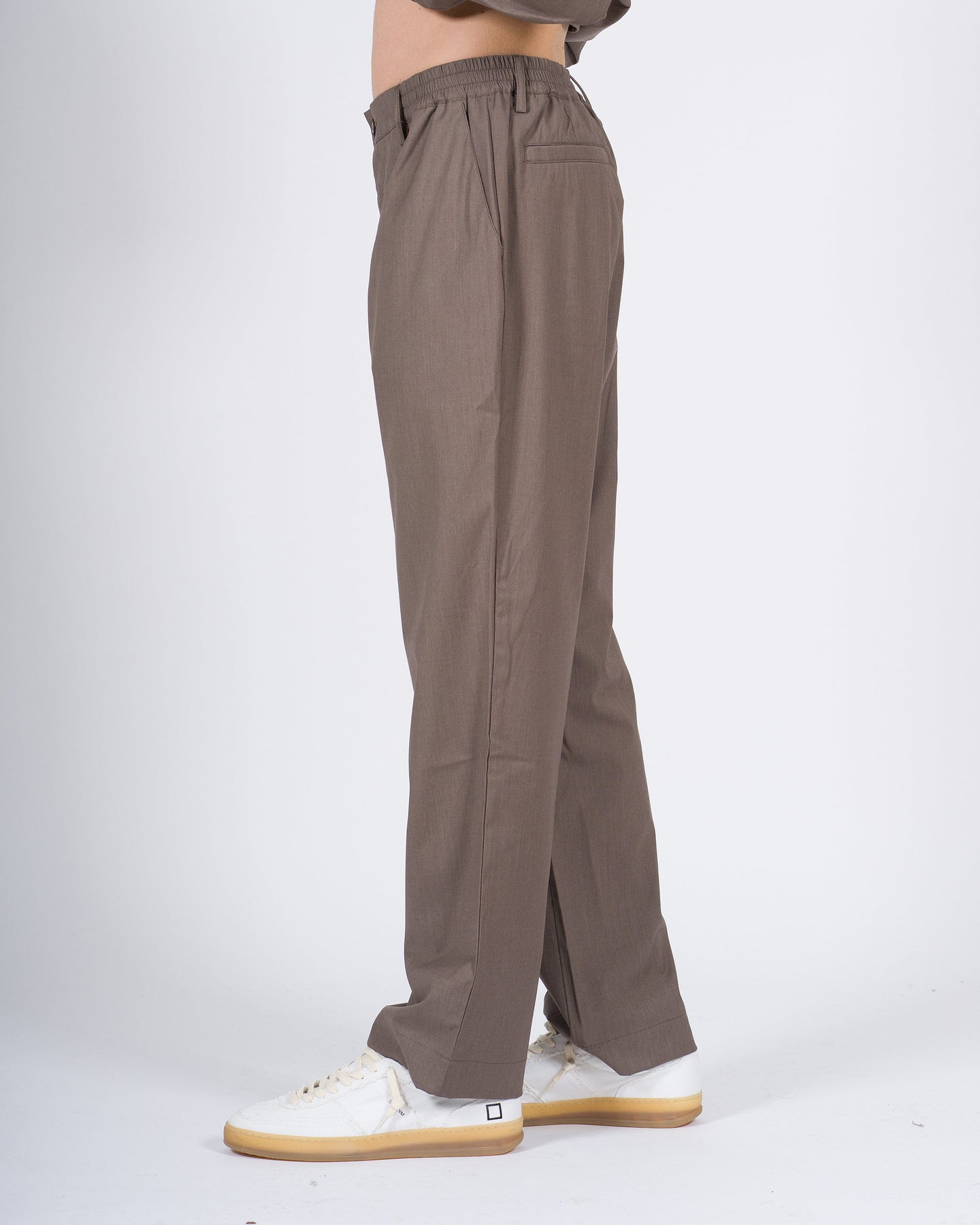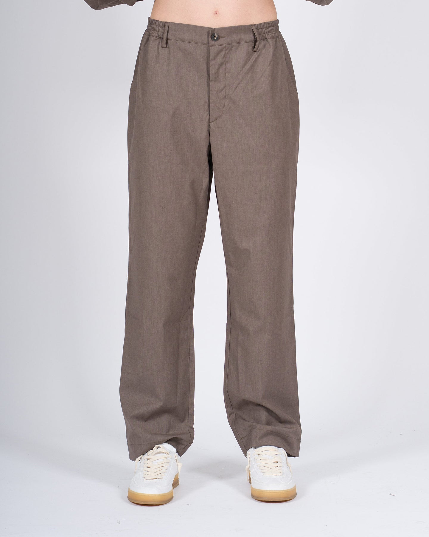 Pantalone uomo WOC fango in fibra naturale con mezzo elastico in vita e volumi ampi per massimo comfort. Tasche a filo e taglio raffinato, perfetto da abbinare alla camicia dello stesso tessuto. Linee pulite e sofisticate per look eleganti e contemporanei.