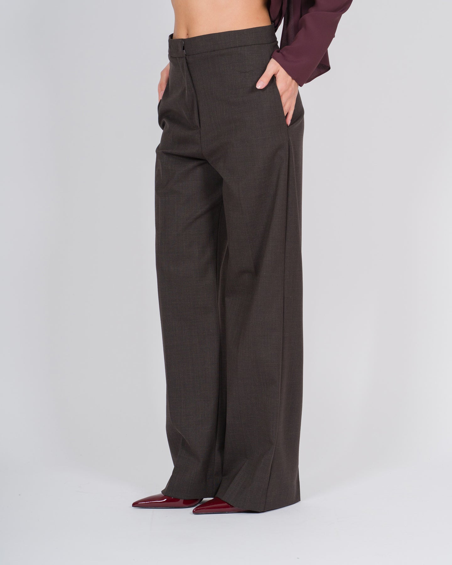 Questi pantaloni lunghi in lana marrone firmati Meimej esprimono un'eleganza rilassata e contemporanea. Caratterizzati da una linea fluida e fondo ampio, avvolgono la silhouette con naturalezza, offrendo comfort e raffinatezza in ogni occasione.La chiusura con bottone e le tasche a filo ne sottolineano l'ispirazione sartoriale, mentre il tessuto in lana morbida e cadente garantisce una vestibilità impeccabile e un movimento armonioso. Ideali per look sofisticati da giorno o da sera, rappresentano un capo essenziale del guardaroba moderno.