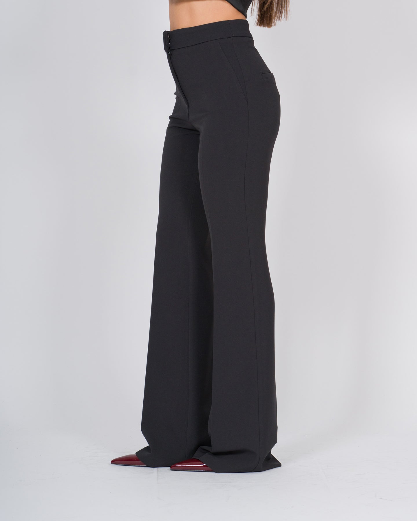 Pantalone donna nero modello cropped, linea ampia e moderna. Elegante e versatile, perfetto per look casual o formali.
