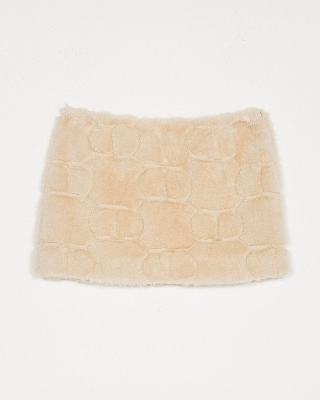 Gonna corta in tessuto lana fur colore panna con logo Oval T.