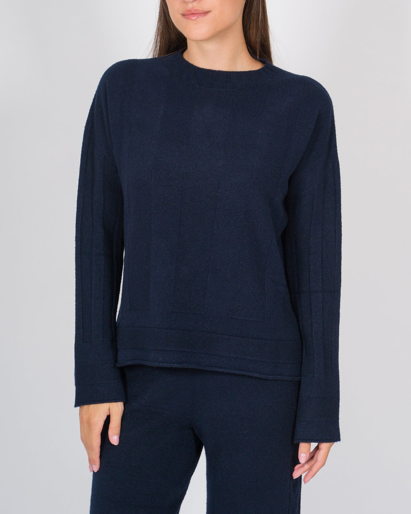 Un modello dallo stile casual e sofisticato, caratterizzato da una lavorazione rigata che dona movimento al tessuto. Realizzata in viscosa dalla mano morbida, presenta volumi comodi e una vestibilità rilassata. Il girocollo rifinito a costine e le maniche larghe esaltano il design contemporaneo, rendendola un capo versatile da indossare ogni giorno.Dettagli:Tessuto: viscosa lavorataColore: bluLavorazione rigataGirocollo a costineManiche lunghe e largheFondo a costineVolumi comodi e linea rilassata