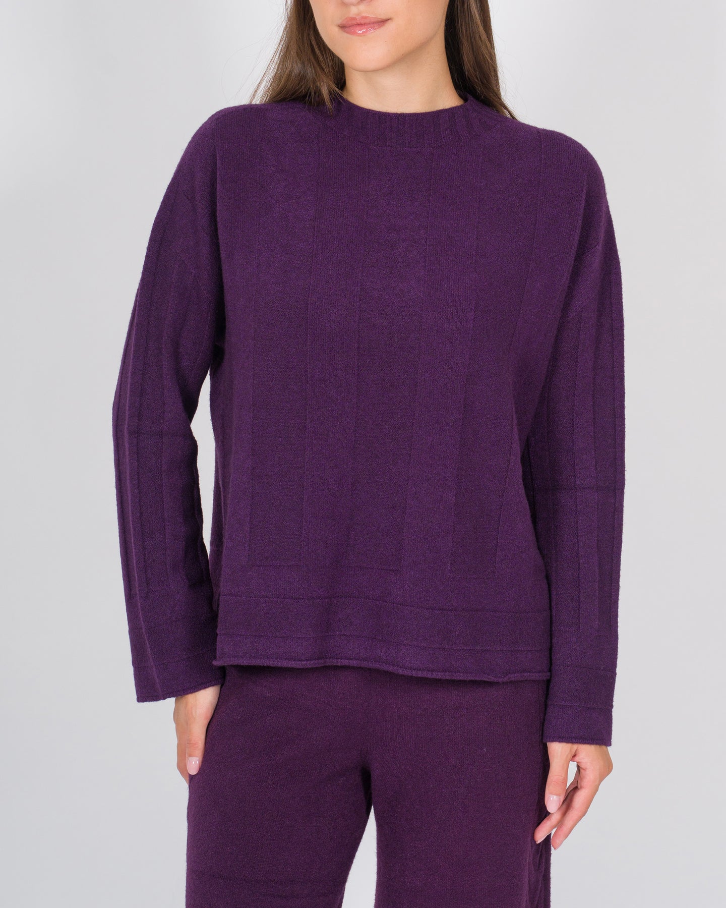 Un modello dallo stile casual e sofisticato, caratterizzato da una lavorazione rigata che dona movimento al tessuto. Realizzata in viscosa dalla mano morbida, presenta volumi comodi e una vestibilità rilassata. Il girocollo rifinito a costine e le maniche larghe esaltano il design contemporaneo, rendendola un capo versatile da indossare ogni giorno.Dettagli:Tessuto: viscosa lavorataColore: melanzanaLavorazione rigataGirocollo a costineManiche lunghe e largheFondo a costineVolumi comodi e linea rilassata