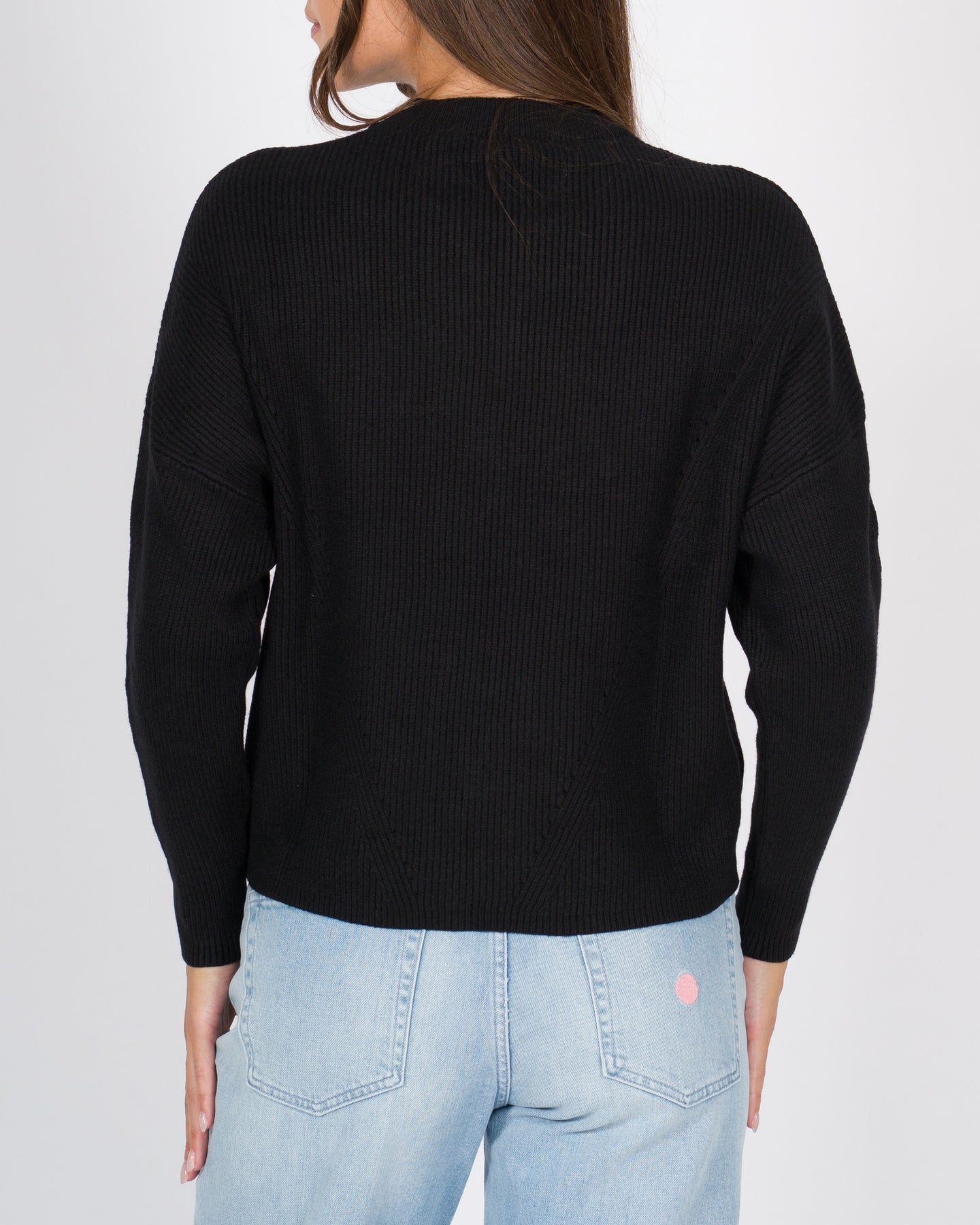 Maglia manica lunga realizzata in viscosa con lavorazione a costine, che dona texture e leggerezza al capo. Il girocollo classico e la vestibilità regolare, la rendono un capo versatile e confortevole, perfetto sia per look casual che più curati.Dettagli tecnici:Lavorazione a costine Manica lunga Tessuto: viscosaColore: neroLa modella indossa la taglia S/M ed è alta 1.70