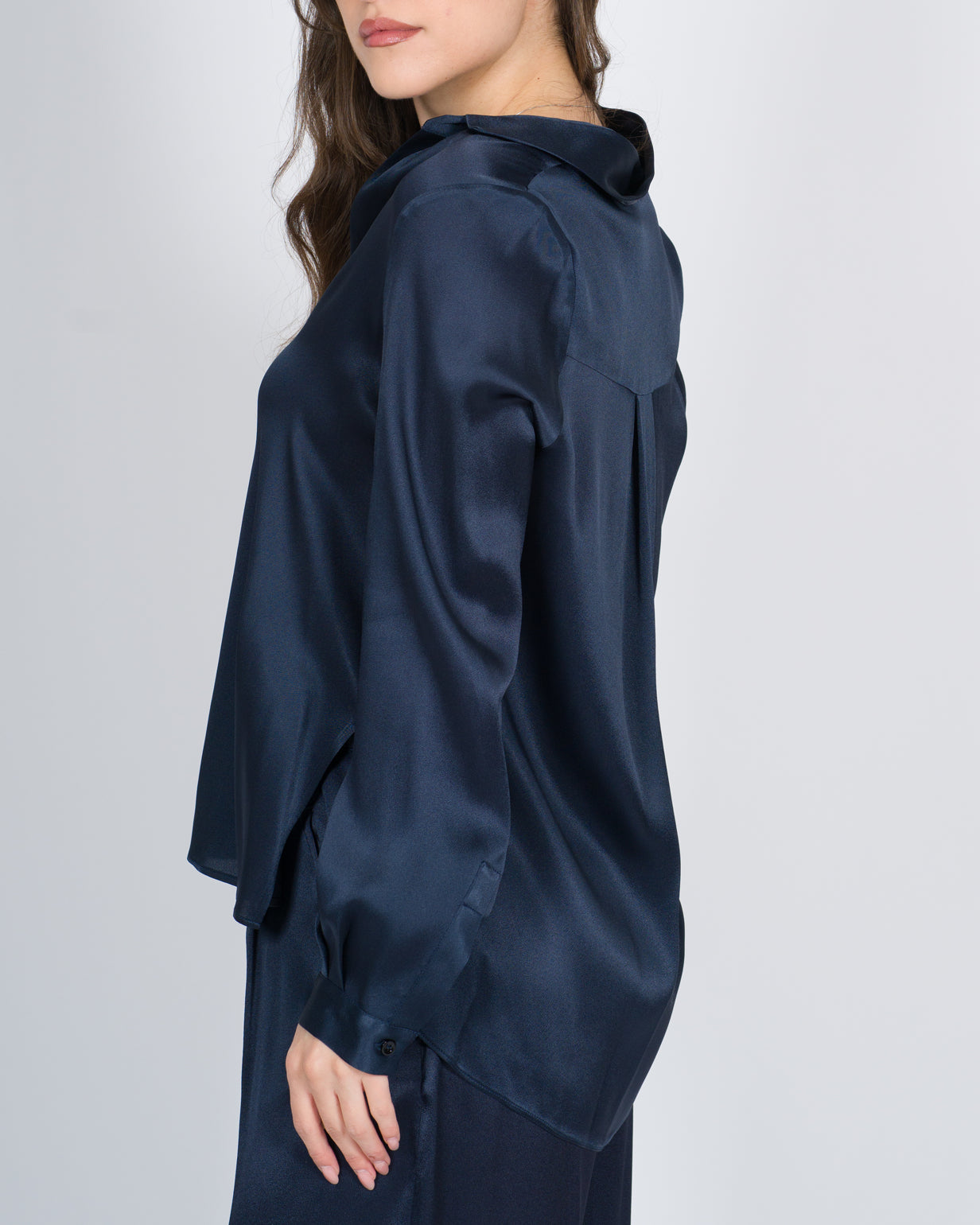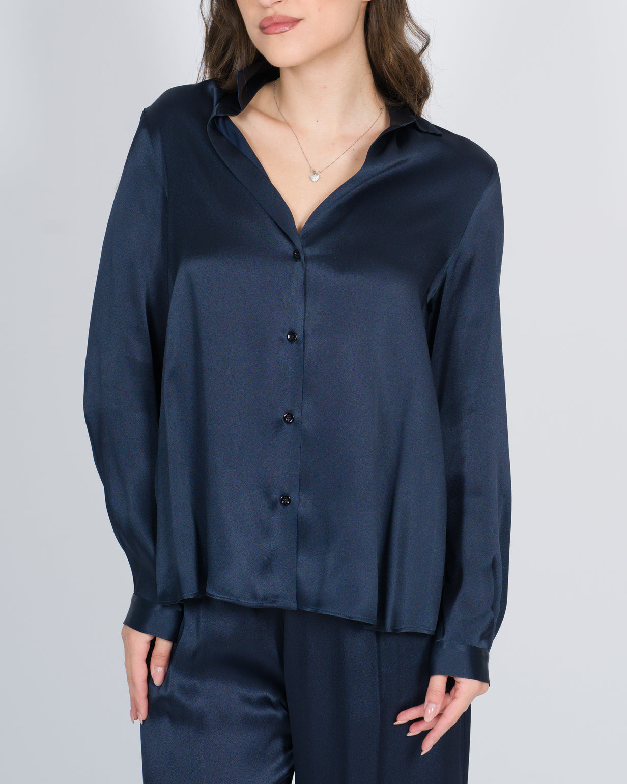 Camicia in rasetto. Manica lunga con polsino. Colletto classico, abbottonatura frontale. Due spacchetti laterali. Lunghezza bacino, vestibilità regular.74% ACETATO 26% SETAMade in ITALY