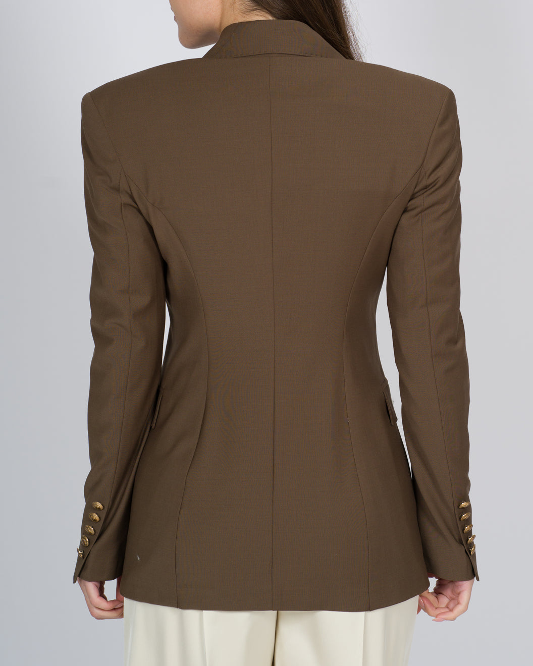 Giacca revers a lancia un solobottone oro e tasche a pattina.Tessuto misto lino.