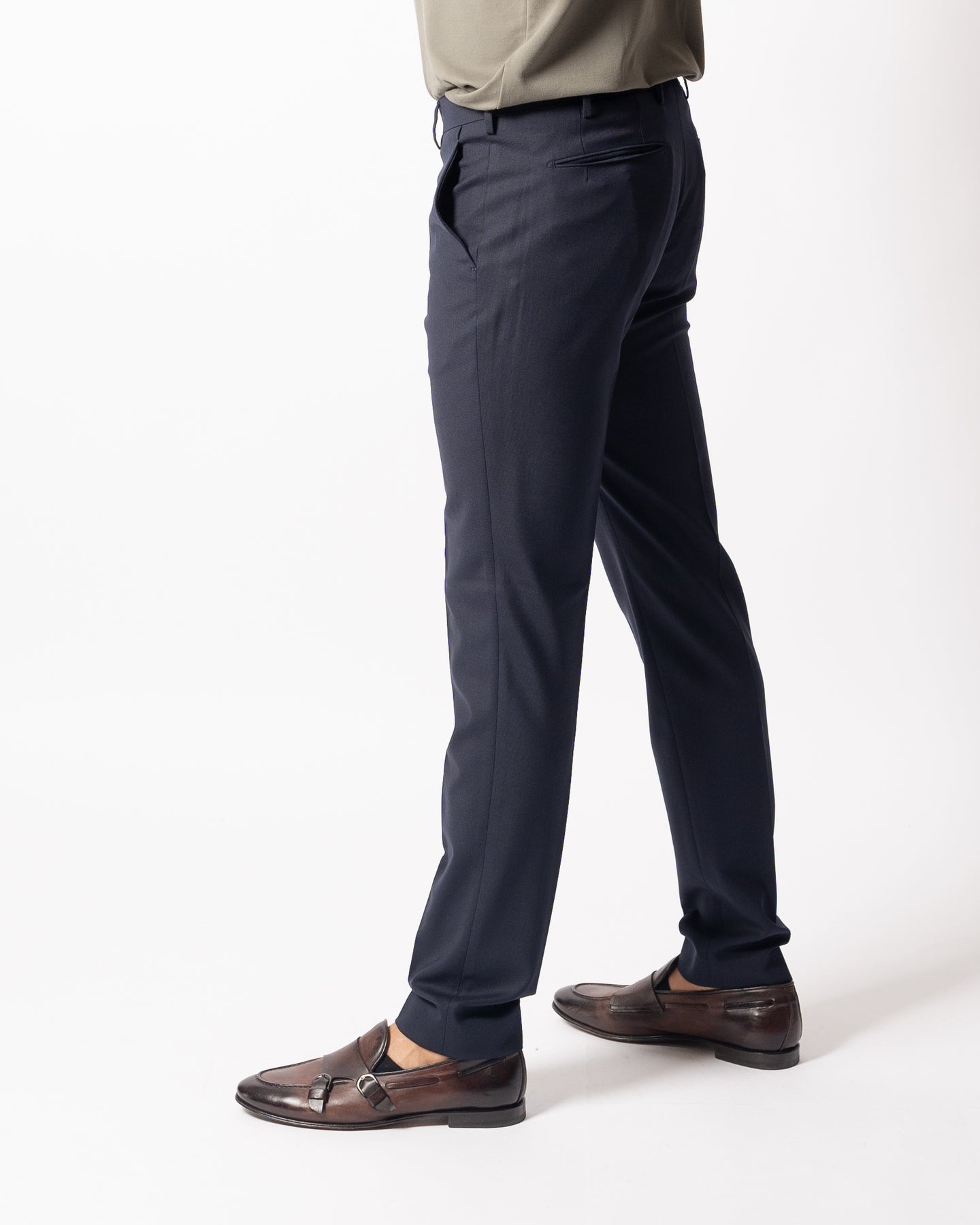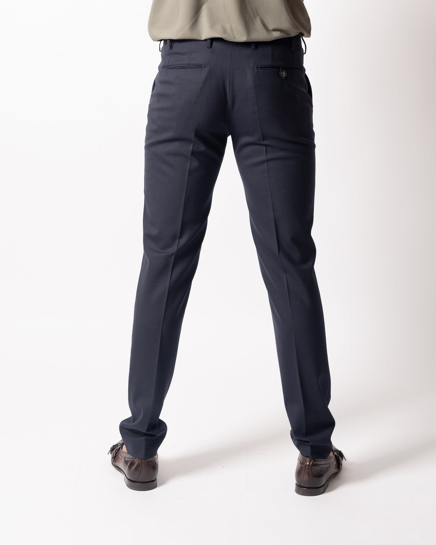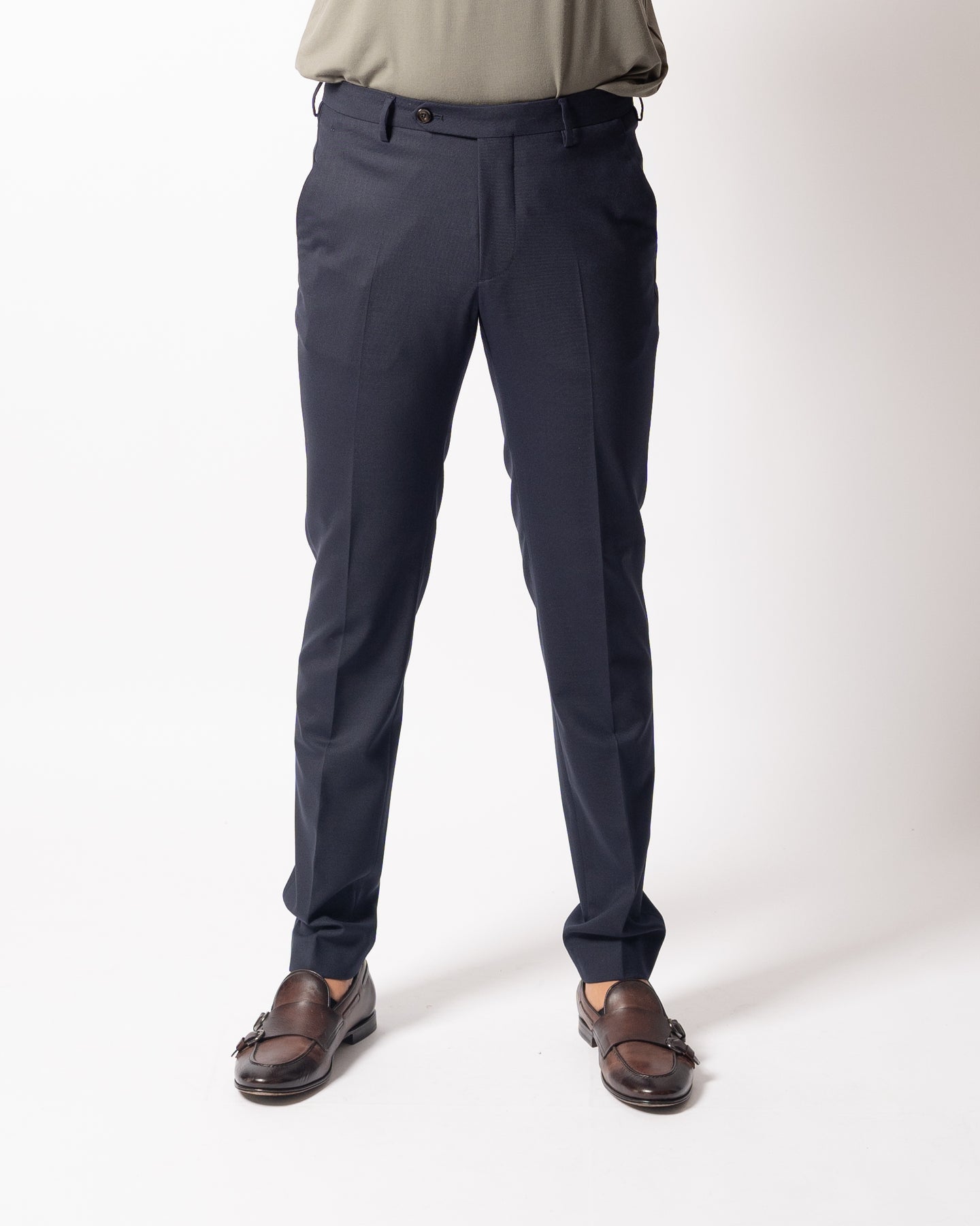 Il modello Morello è un pantalone dalla vestibilita slim regular, con tasche a filo e ventre piatto.Il tessuto è una lana vergine stretch elasticaIl modello indossa la taglia 48