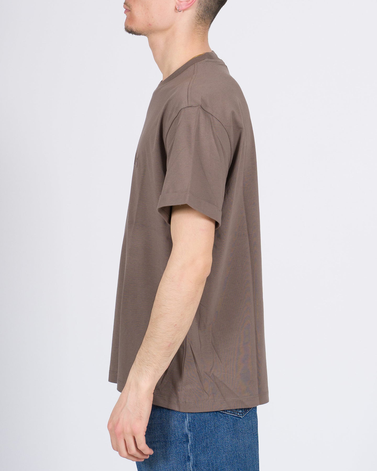T-shirt modello Barcellona in cotone color fango, mezza manica con risvolti sulle maniche e piccolo loghetto sul petto. Vestibilità comoda e design essenziale, perfetta per un look casual moderno e facilmente abbinabile a pantaloni o jeans per outfit quotidiani contemporanei.