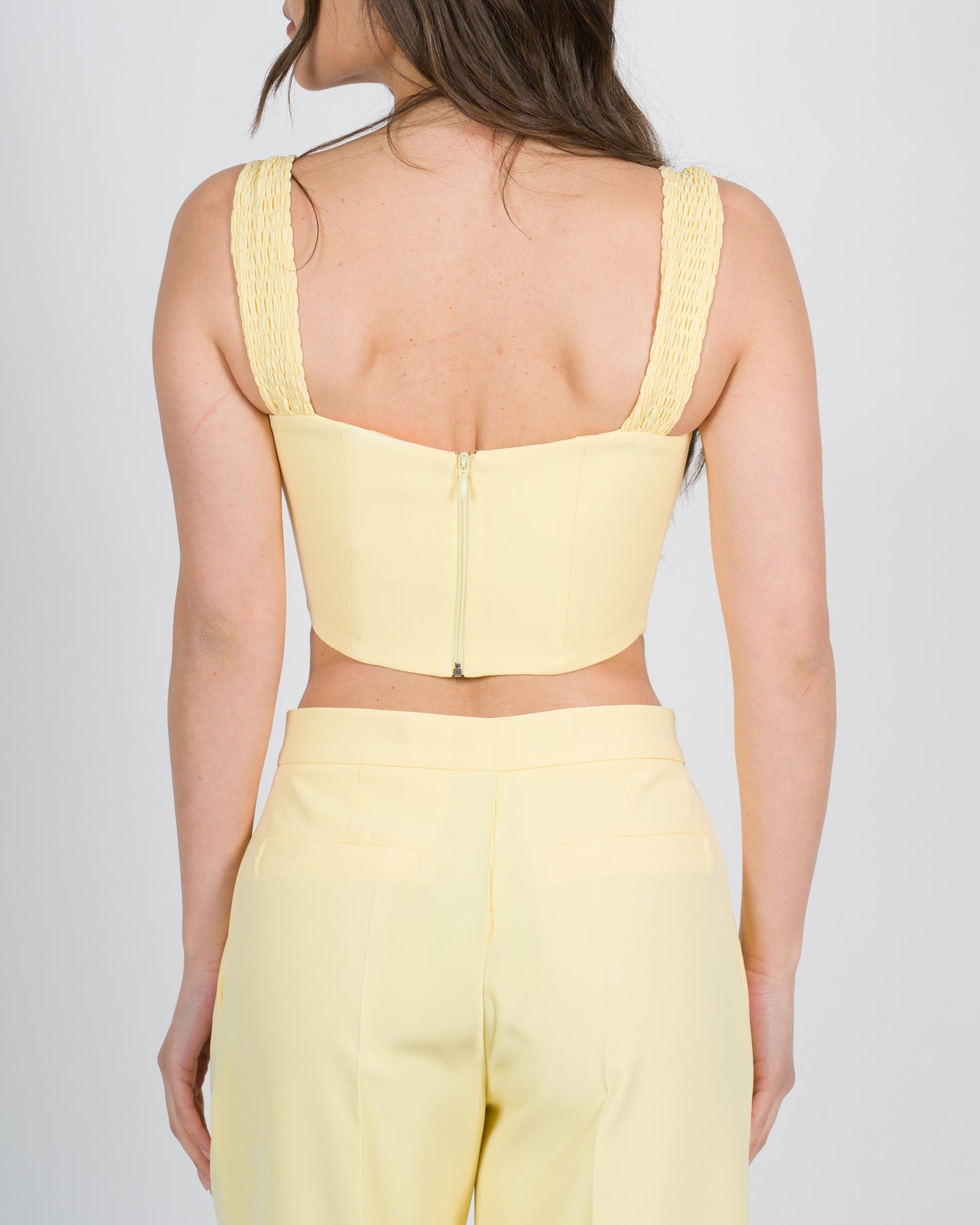 -Tessuto Tecnico-Semi steccato-Bretelle non regolabili-Scollo a cuore-Vestibilità slim-Chiusura con zip dietro-Prodotto Made in Italy-Composizione: 90% PES, 10% SP-La modella indossa la taglia S