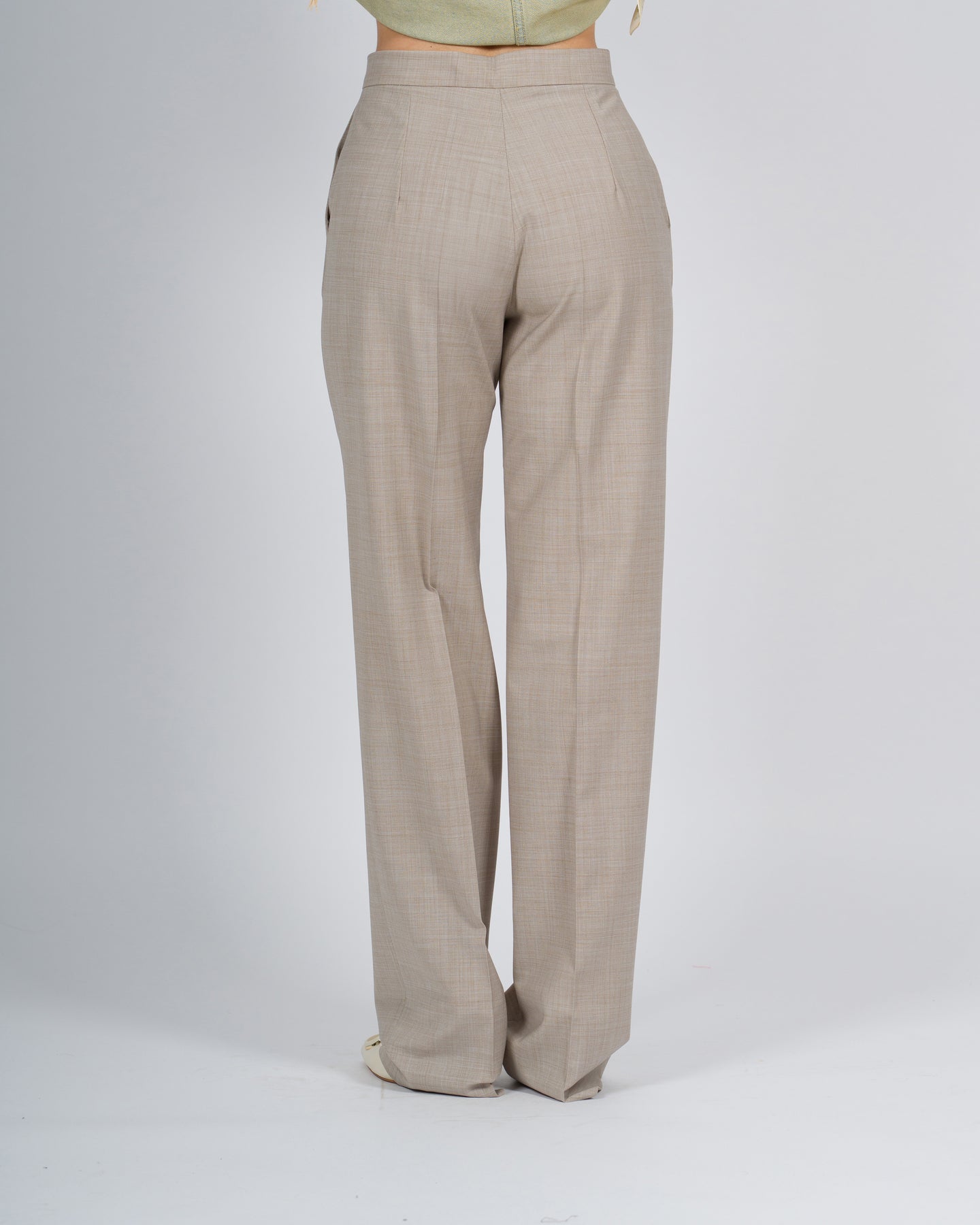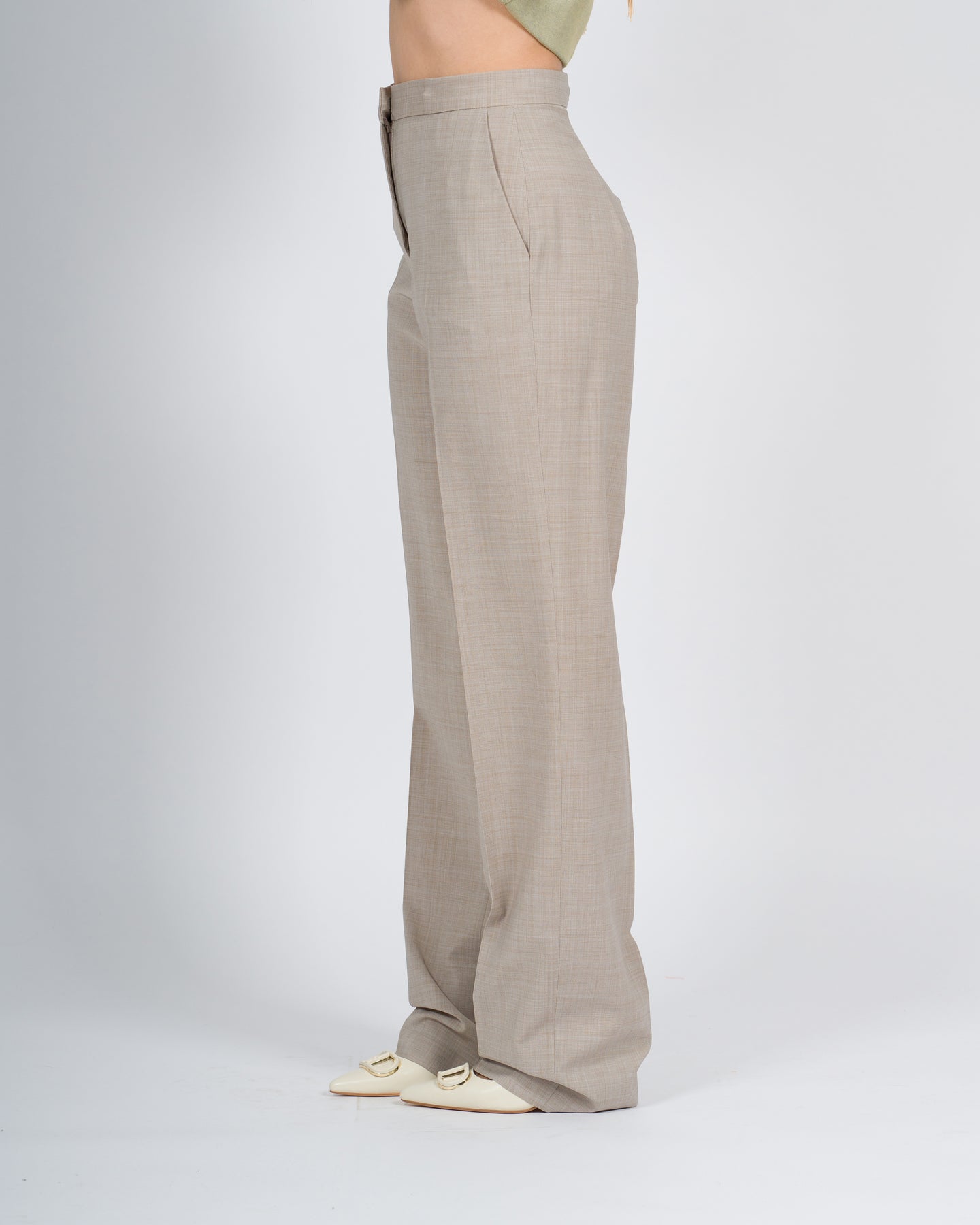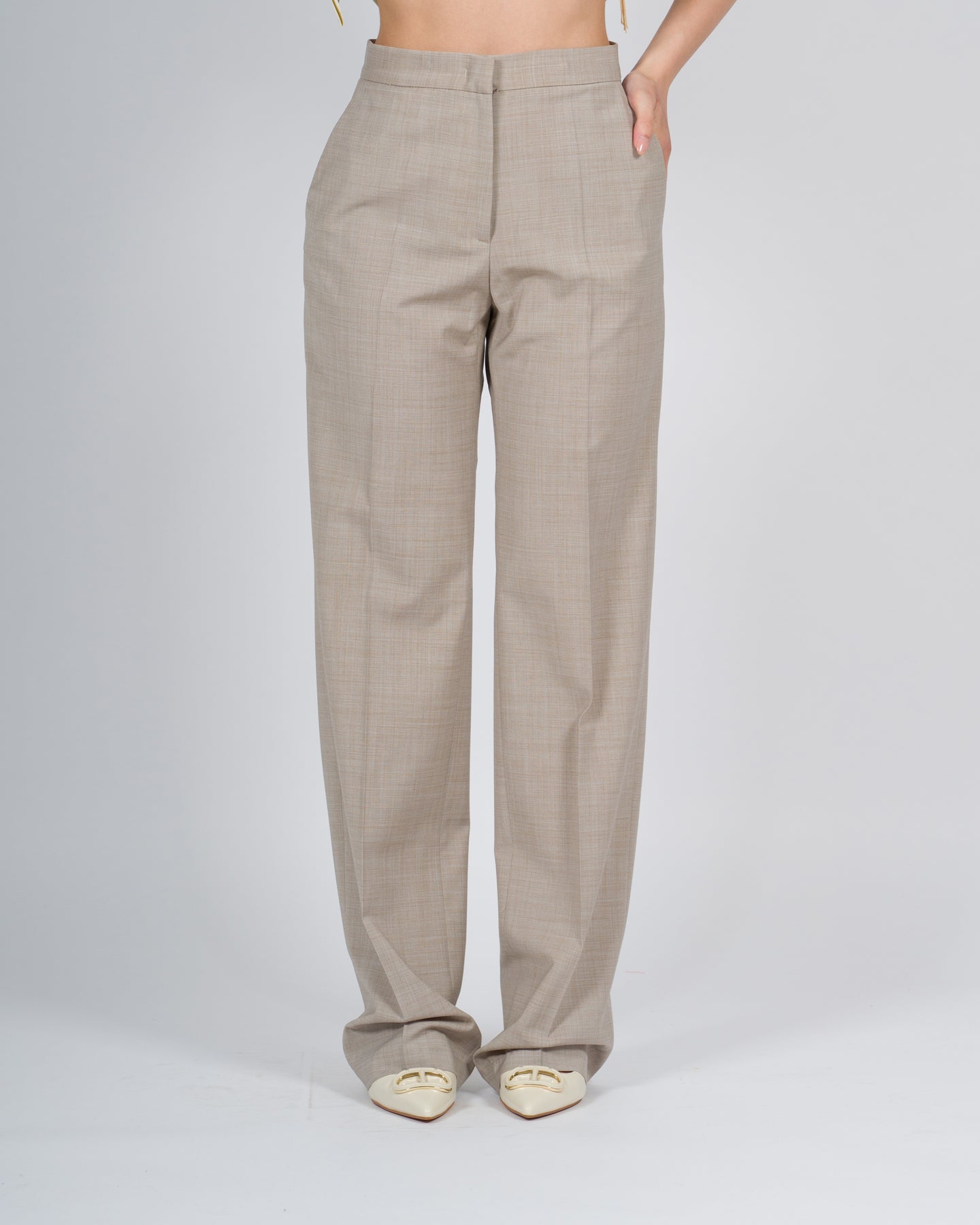 -Fresh Wool Pants-Tessuto merino-Vita regolare-Chiusura con zip e gancetto avanti-Due tasche laterali-Prodotto made in Italy-Composizione: 52% WO, 42% PL, 05% ELLa modella indossa la taglia S
