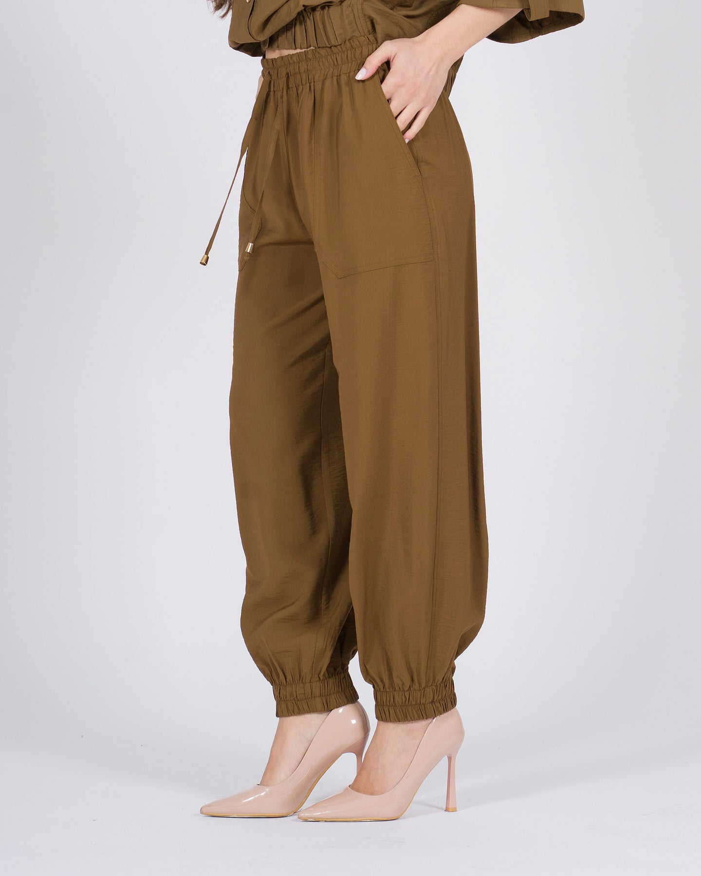 Avvolgente e sofisticato, il Pantalone morbido con elastico, coulisse e polsini - Colore Cioccolato unisce comfort assoluto e stile contemporaneo. La linea fluida accarezza la silhouette con naturalezza, mentre la vita elasticizzata con coulisse regolabile garantisce una vestibilità personalizzata e impeccabile.I polsini al fondo definiscono la linea con un tocco moderno e sport-chic, rendendo il capo perfetto per outfit casual raffinati o look athleisure di lusso. La tonalità cioccolato, calda e intensa, dona eleganza e versatilità, ideale per abbinamenti neutri o contrasti più audaci.Realizzato in tessuto di alta qualità, è il pantalone perfetto per chi desidera uno stile rilassato ma ricercato.